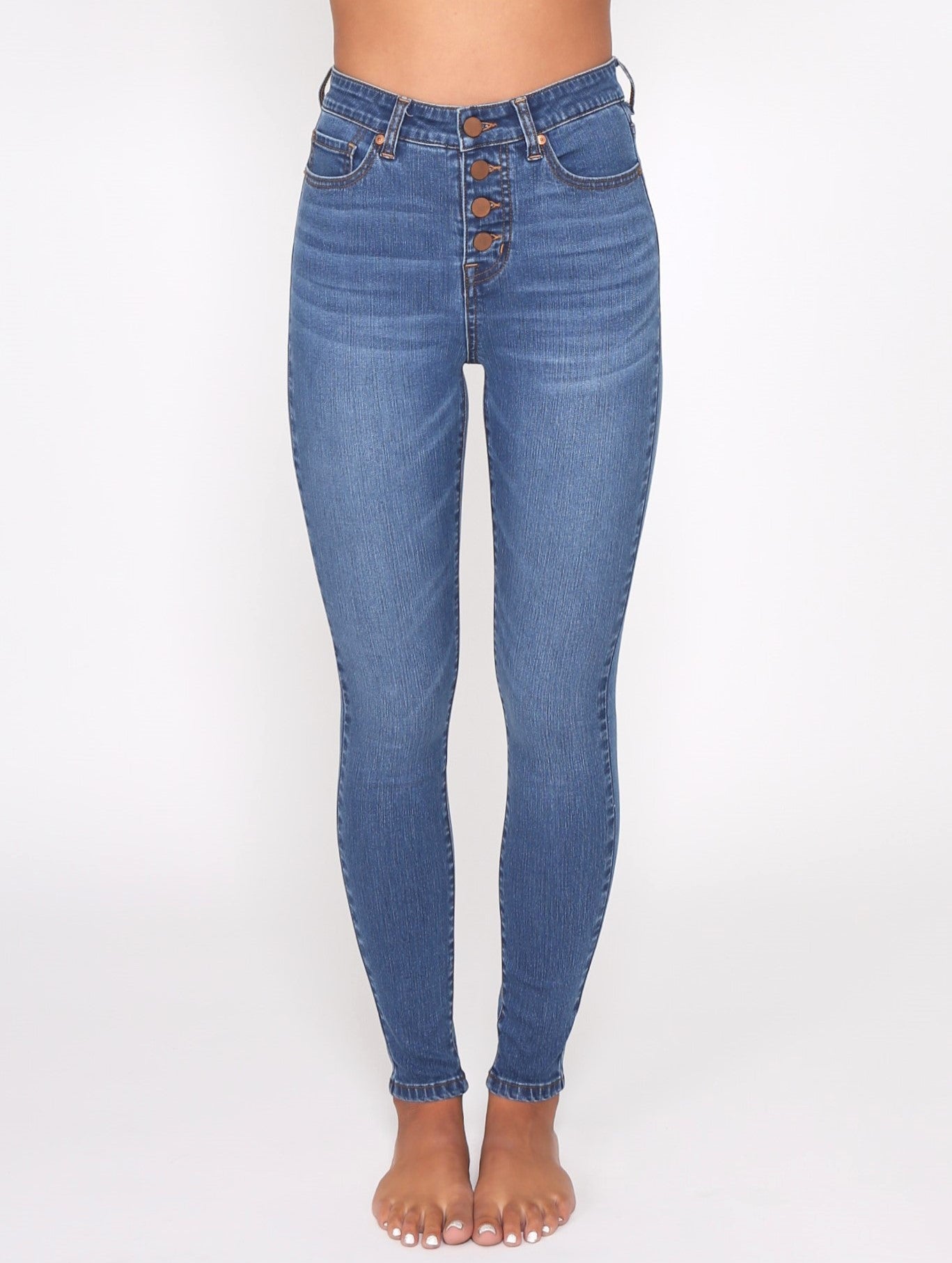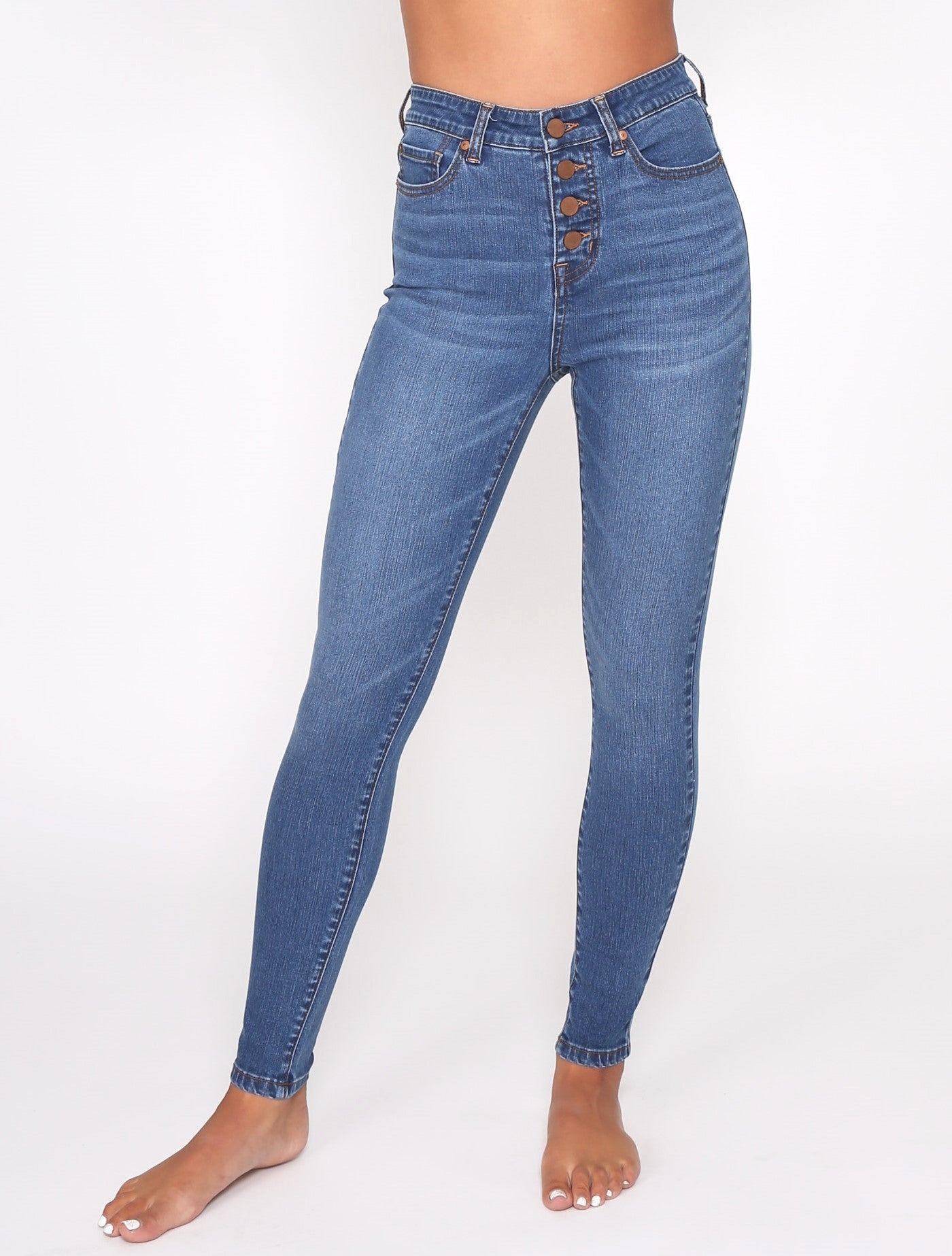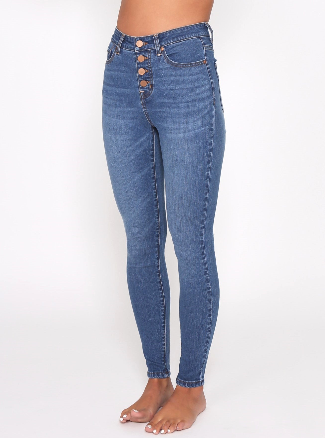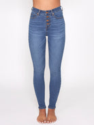 The Adele Skinny Jeans designed by Monaco Jeans is your favourite modern skinny jeans with a cult favourite exposed button front detailing add a retro flare! The Adele Skinny Jeans is versatile enough to dress up or down. This style is figure hugging for an ultra-flattering, stretchy, skinny fit. Add this eye-catching Adele Skinny Jeans to your wardrobe for beauty, comfort and effortless style.