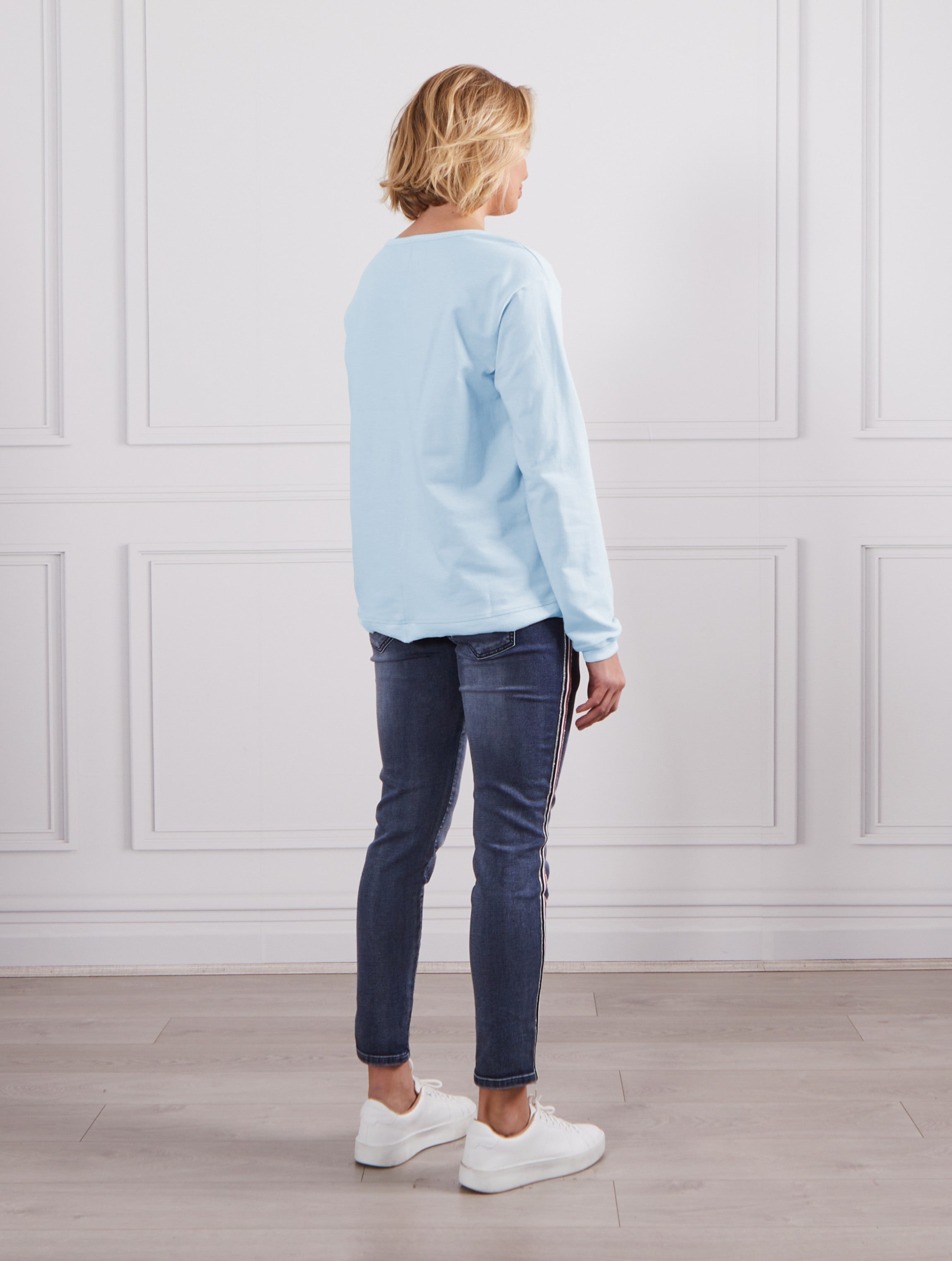- Ribbed cuffs, neckline and hem
