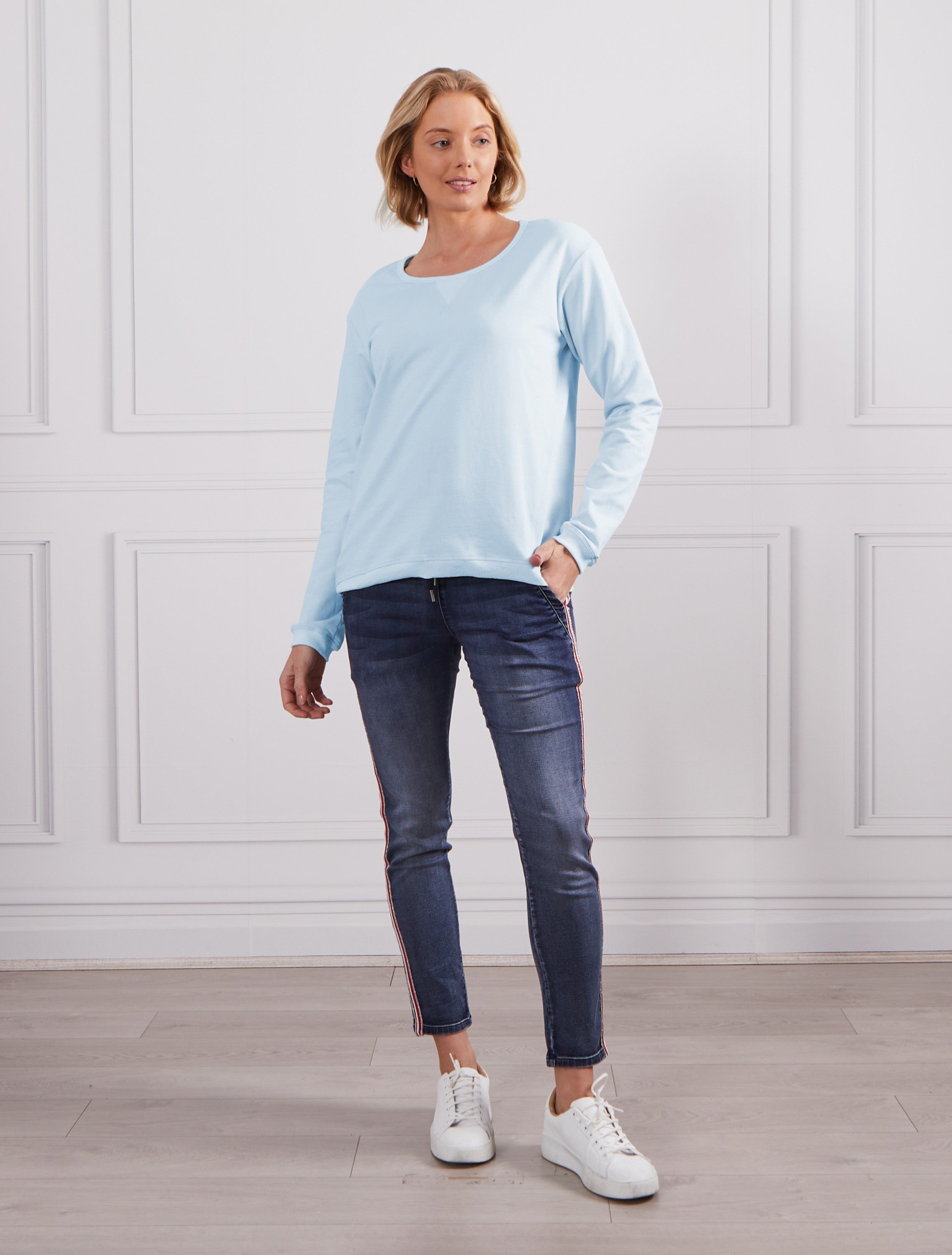 Nothing but love for this perfect Aki Sweat Designed by G7. Super-soft fabric with a beautiful finish makes this pullover impossible to take off. This comfy jumper is loose fit with a little extra room and perfect length just right around the waistband.