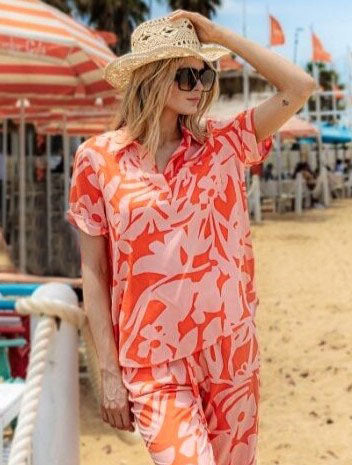As easy as a summer's day, this short sleeve Bondi go-anywhere casual top has a loose comfy fit and cap sleeves. Mother Nature’s performance fiber, our lightweight silky viscose shirt wicks moisture and breathes to keep you cool. Crafted with pure lux viscose, assembled with elegant design and made, finished with a cuffed detail on the short sleeves, this effortless shirt features a slouchy, relaxed fit and rounded bottom hem for added shape.