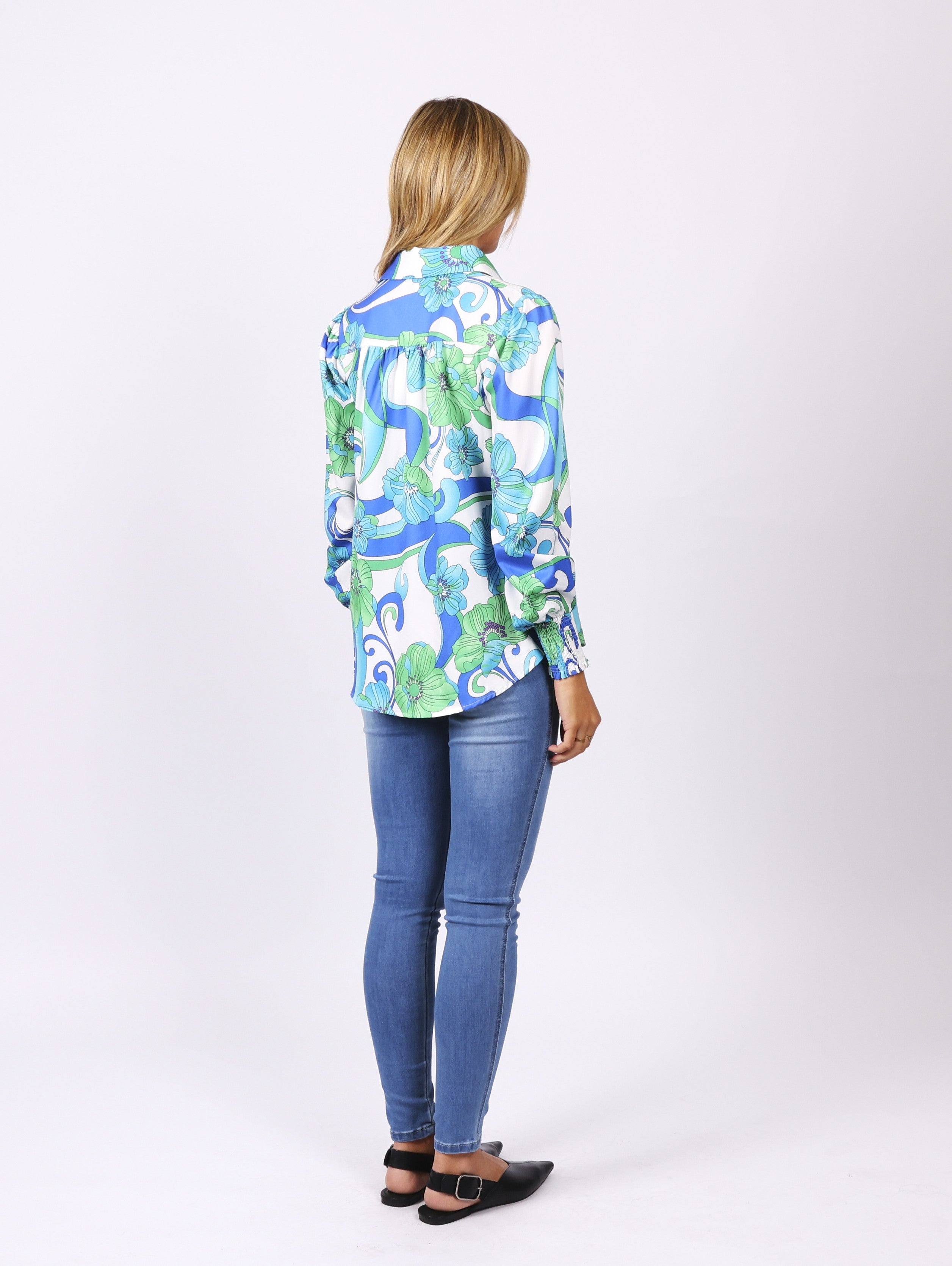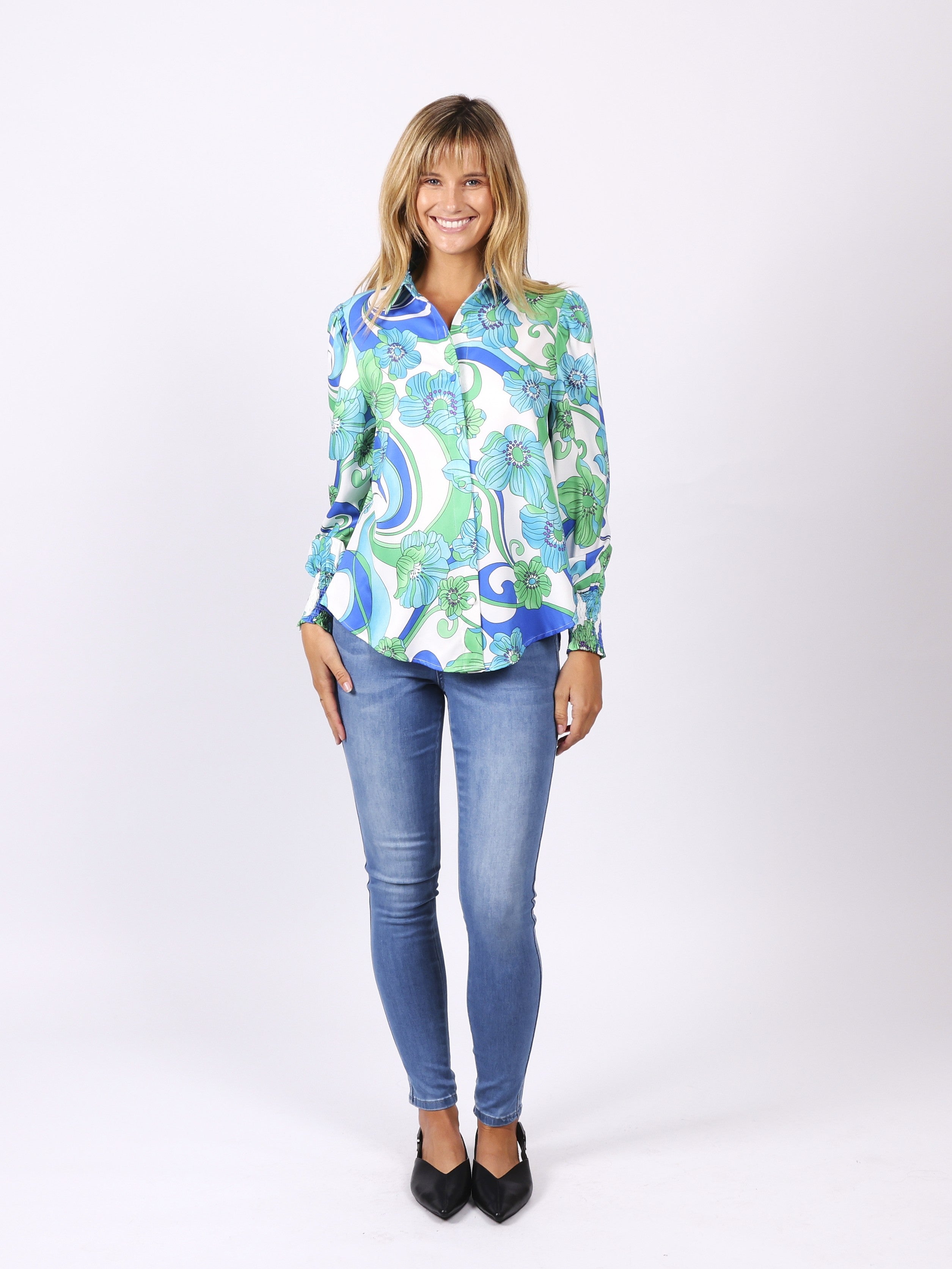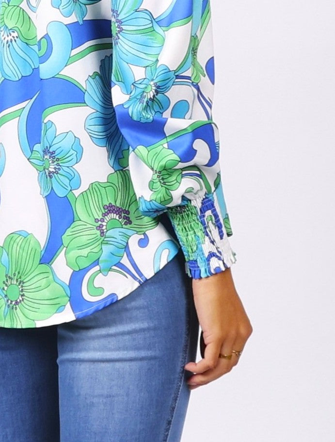 - Full length sleeve with shirred cuff to roll shorter as 3/4 length