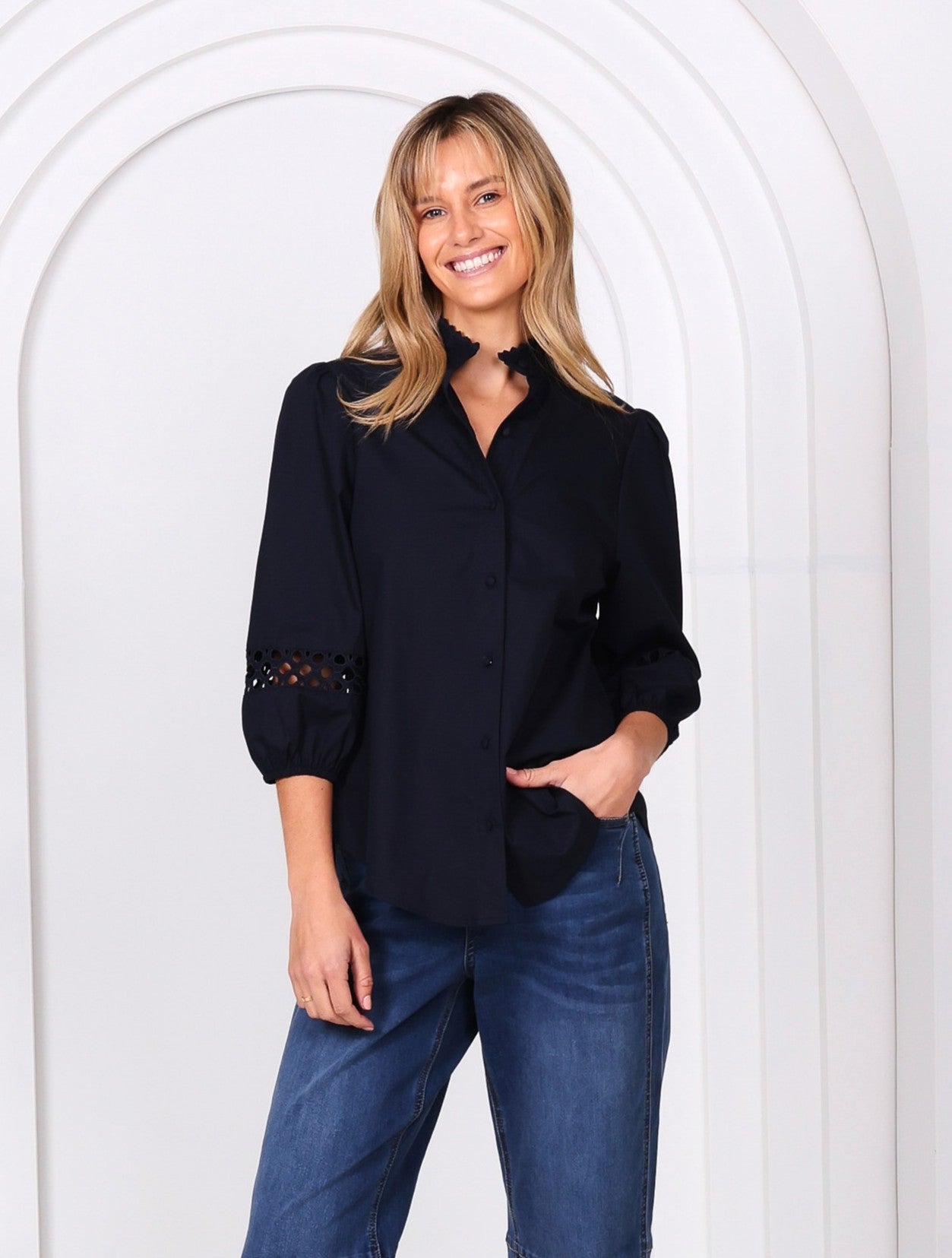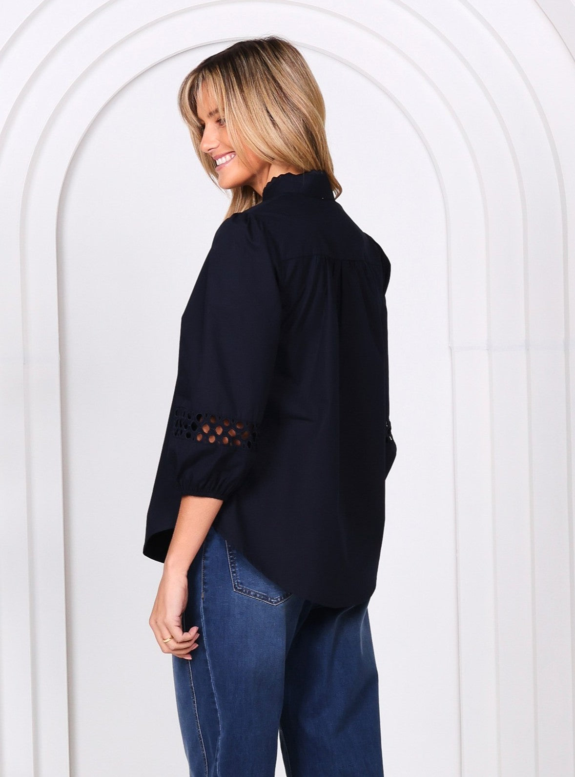 Perfect for a city break, this Dior top is a must-have in your wardrobe! Featuring button front detailing, cotton broidery fabric on sleeves and neck rim!