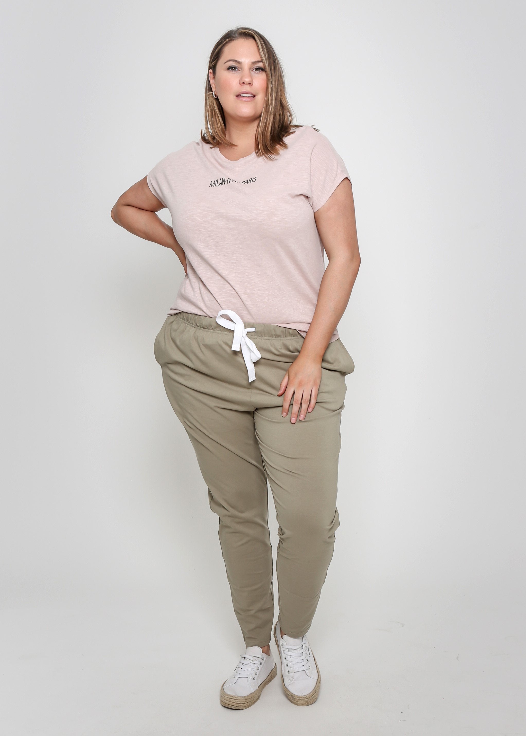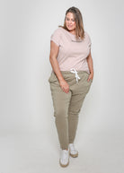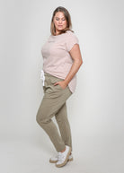 These joggers are too stylish just to wear at home. Comfortable and chic, the Emmy Joggers by Leoni are perfect for walks, school drop-offs, coffee dates, and travel. Made from cotton and elastane and featuring a modern track pant style with an elastic waist and tapered, ankle-length cut, they feel and look great to wear. Just throw them on, add your favourite tee, and go!