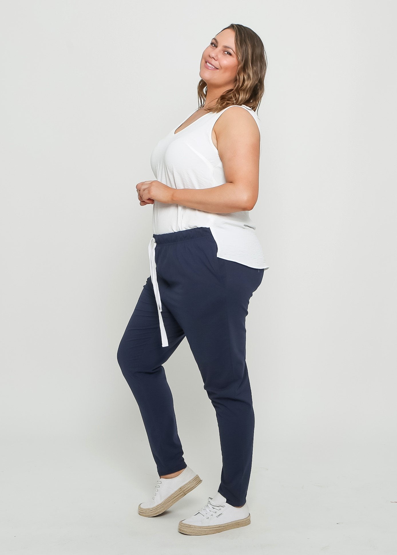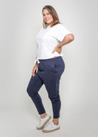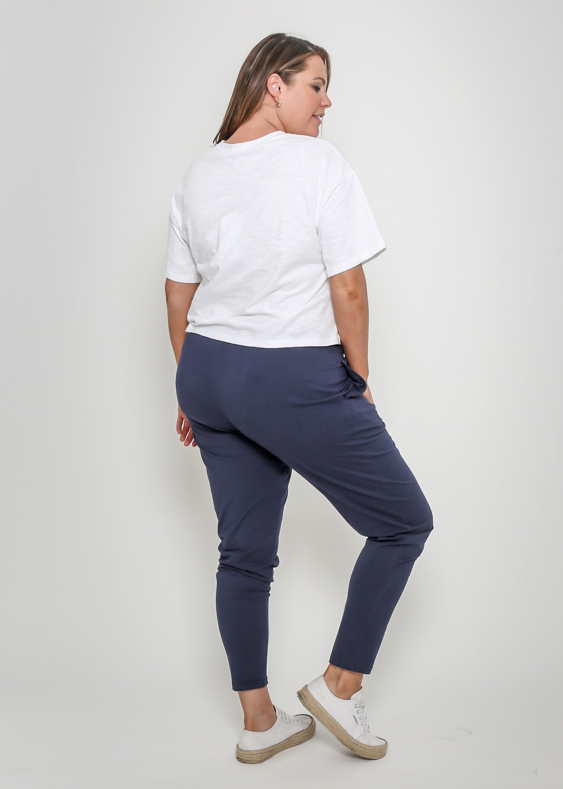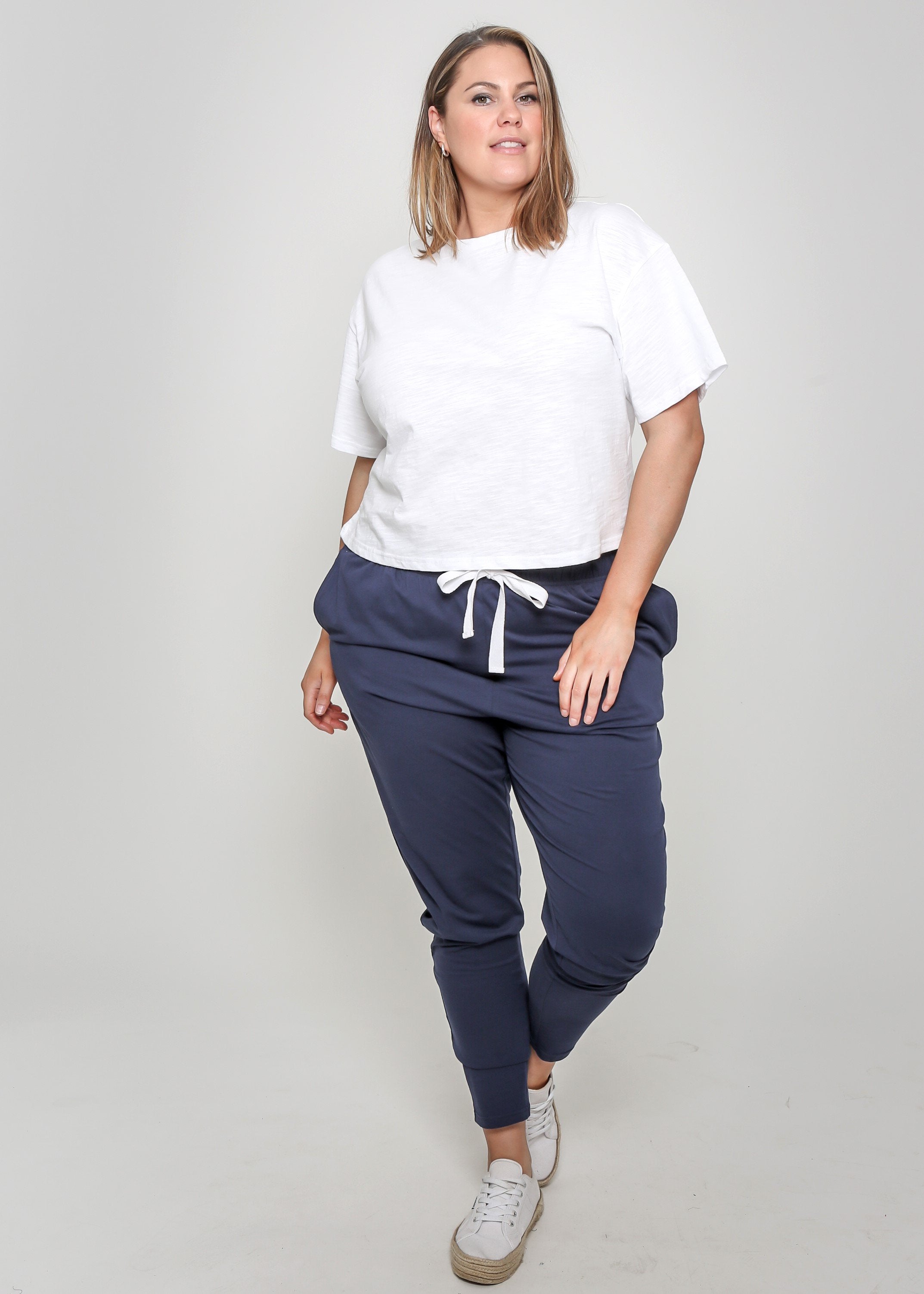 These joggers are too stylish just to wear at home. Comfortable and chic, the Emmy Joggers by Leoni are perfect for walks, school drop-offs, coffee dates, and travel. Made from cotton and elastane and featuring a modern track pant style with an elastic waist and tapered, ankle-length cut, they feel and look great to wear. Just throw them on, add your favourite tee, and go!