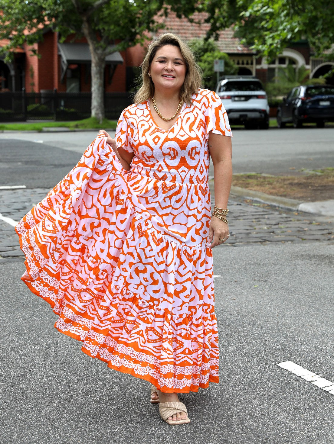This beautiful poplin maxi Ira Dress designed by Leoni is a must for the summer months and coming holidays, with short frill sleeves and a defined waist details to elevate the look. A ruffled hem adds a finishing touch for elegance and femininity. Elevate your style with this timeless and sophisticated Ira Dress!