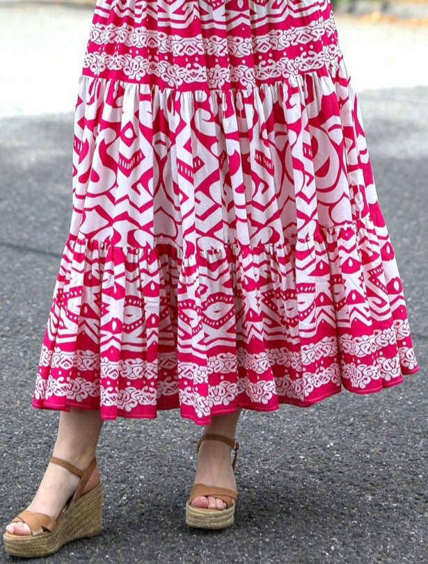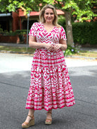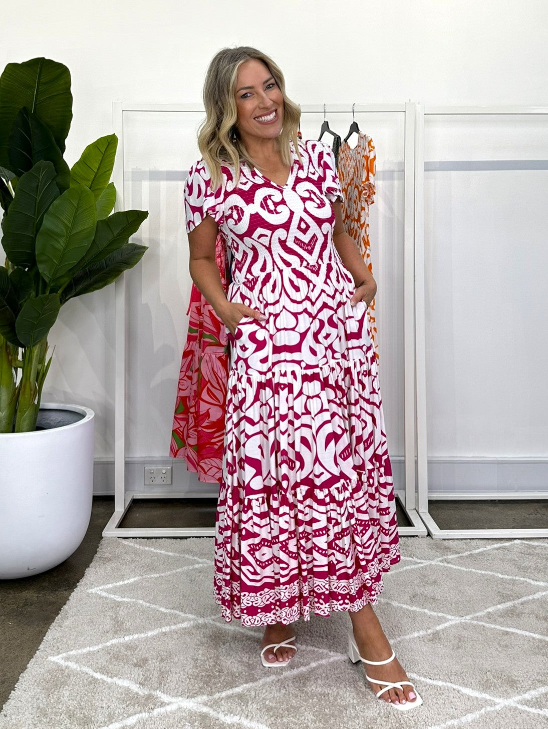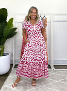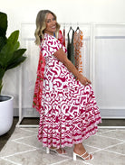 his beautiful poplin maxi Ira Dress designed by Leoni is a must for the summer months and coming holidays, with short frill sleeves and a defined waist details to elevate the look. A ruffled hem adds a finishing touch for elegance and femininity. Elevate your style with this timeless and sophisticated Ira Dress!