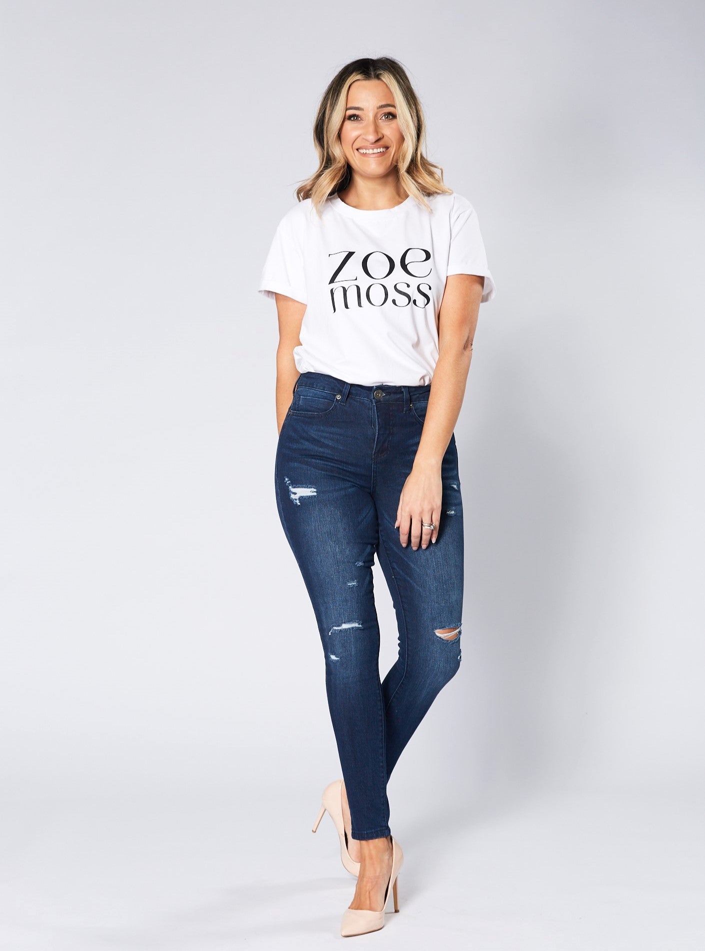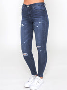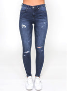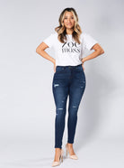 The Kylie Jeans designed by Monaco Jeans is the perfect deconstructed jean. A high rise, slim through hip and thigh, slim tapered leg, ankle crop jean constructed from stretchy denim. The Kylie Jeans features front rips and light distressing for a modern take on the classic stretchy denim staple. This silhouette continues to be a go-to for the fans of a denim slim-leg design.