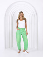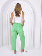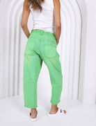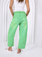 Characteristics of Leo Barrel-Leg Jeans include a fitted waist, flared-out shape around the mid-leg, and tapered silhouette at the bottom, which exudes the look of, well, a barrel. It's the vibe of a cowboy ready for a showdown in the Wild, Wild West!!!