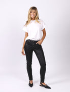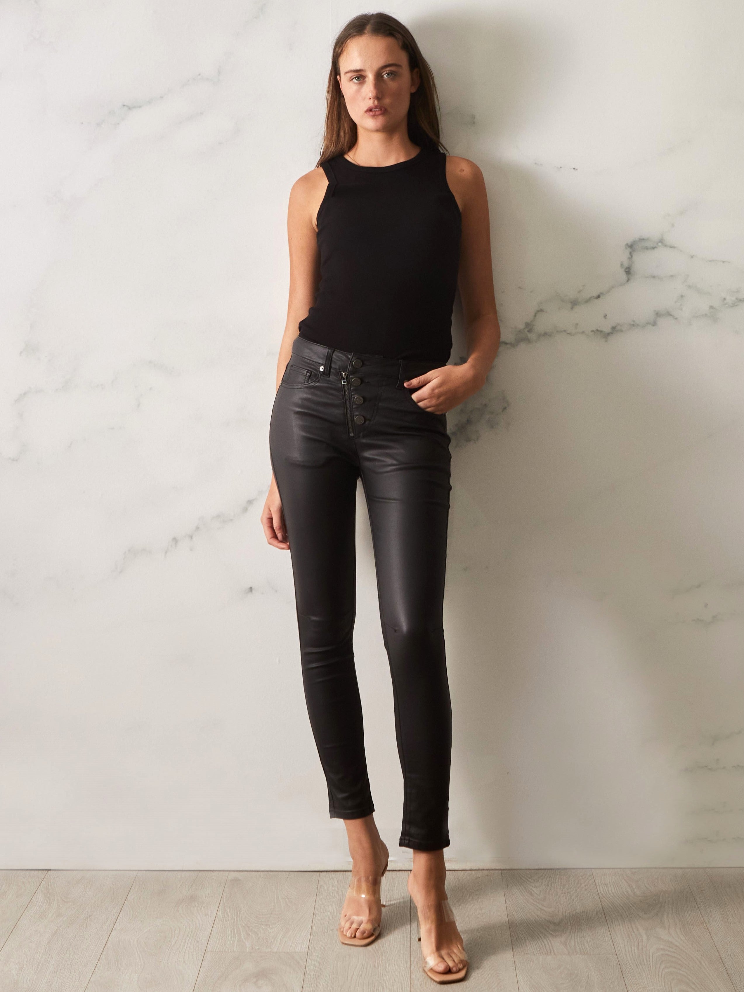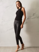 The Louis Jean Wax Look designed by Monaco Jeans is your favourite modern skinny jean. The Louis Jean is versatile enough to dress up or down. This style is figure hugging for an ultra-flattering, stretchy, skinny fit. Add this eye-catching jean to your wardrobe for beauty, comfort, and effortless style.