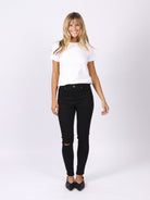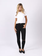 The Megan Ripped Knee Skinny Jeans designed by Monaco Jeans is a cult favourite. The Megan Ripped Knee Skinny Jeans is made from a cotton-rich denim blend, the high-waisted jeans boast a streamlined skinny fit and edgy ripped detailing at the knees. This is the very stylish jeans you can have in your wardrobe.