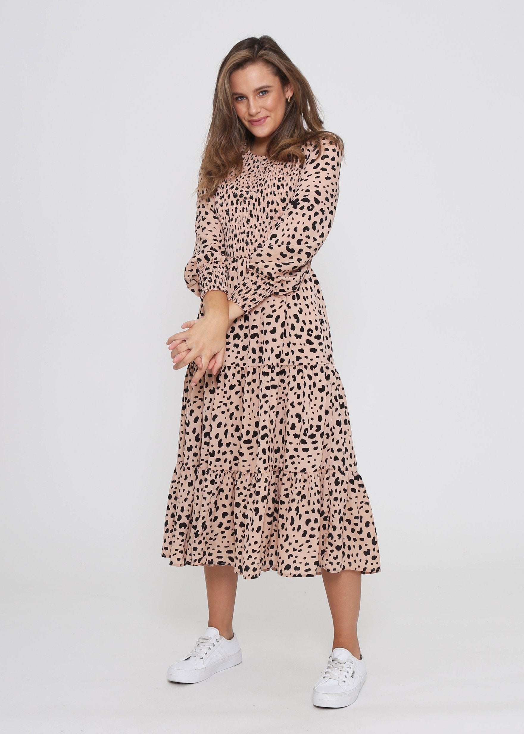 Phoenix Dress - Peach Leopard