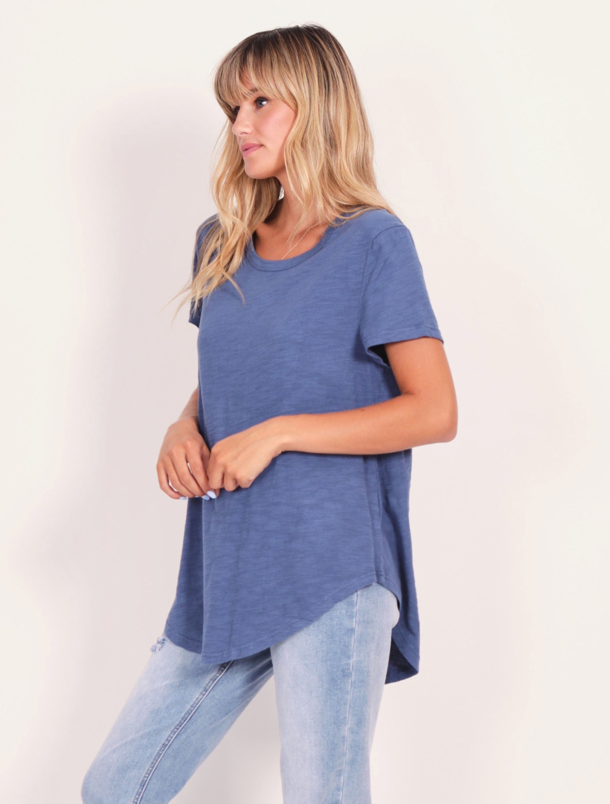 Nothing but love for this perfectly oversized River Tee Designed by G7. Super-soft fabric with a beautiful finish makes this pullover impossible to take off. This comfy tee is loose fit with a little extra room and perfect length just right around the waistband.