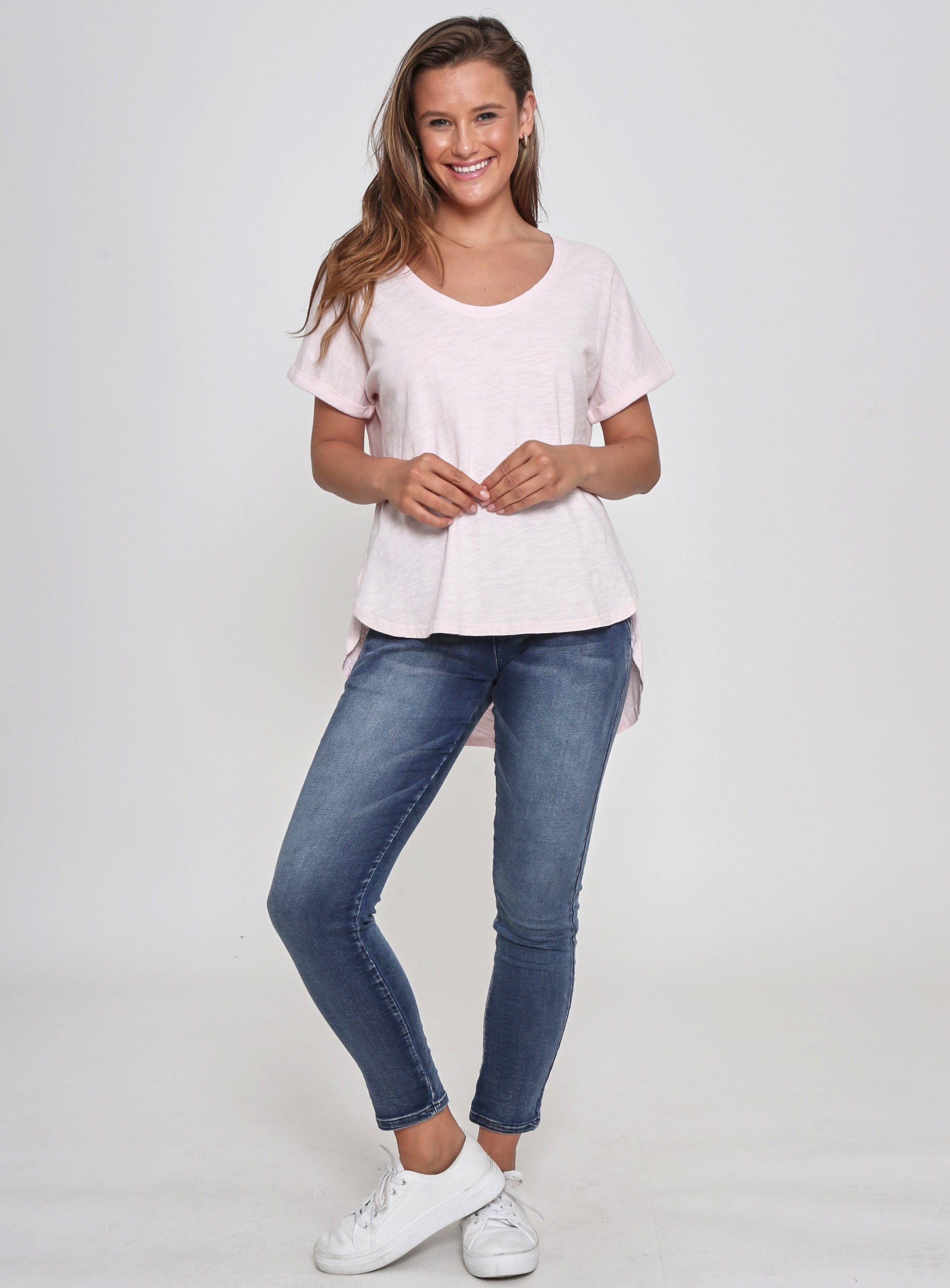 - High and low curved hem