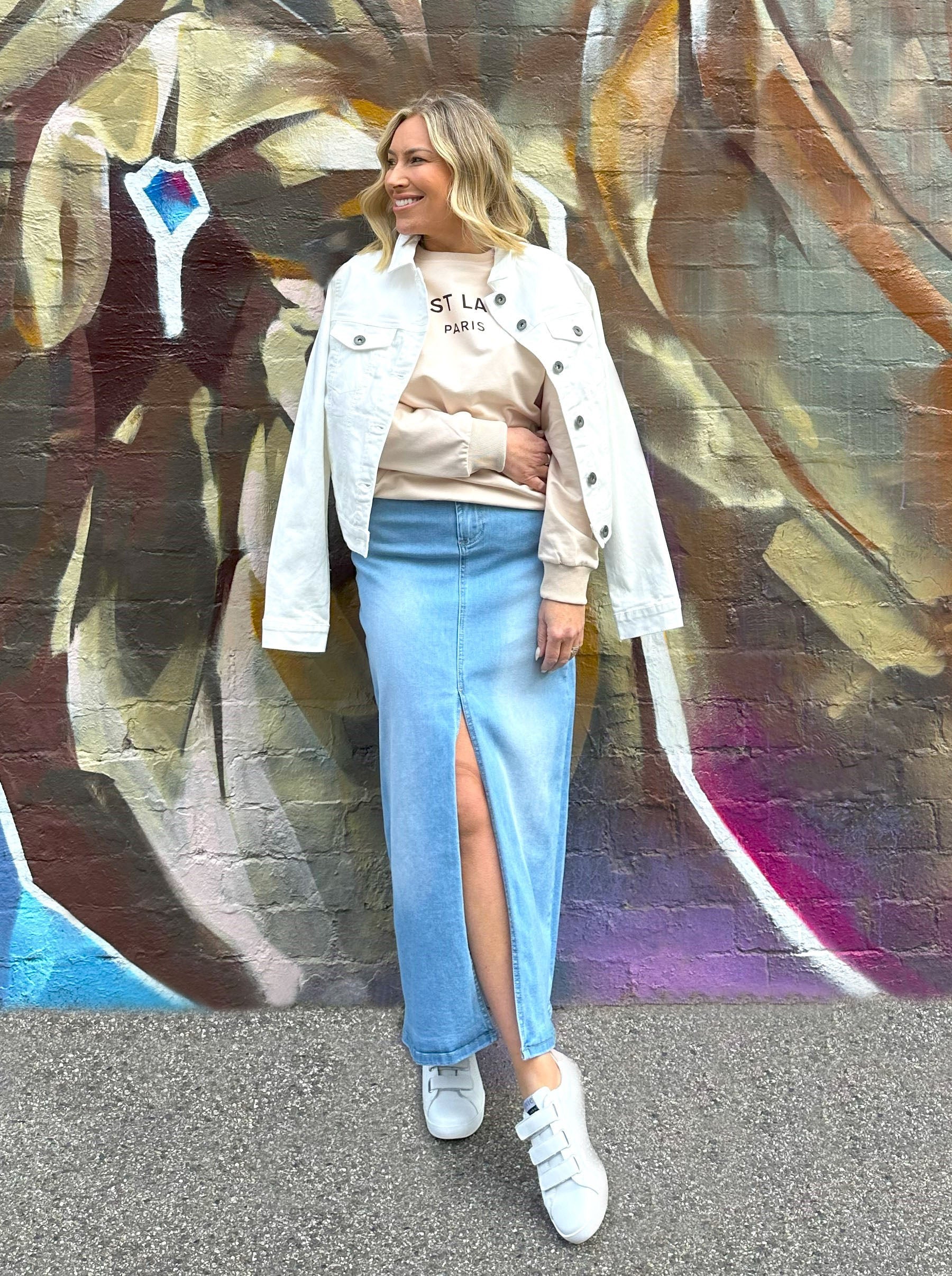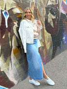 The Rylan Denim Jacket is made with beautiful soft denim by Monaco Jeans. It has a feminine fit that allows for easy styling and will soon become the most worn jacket you own!