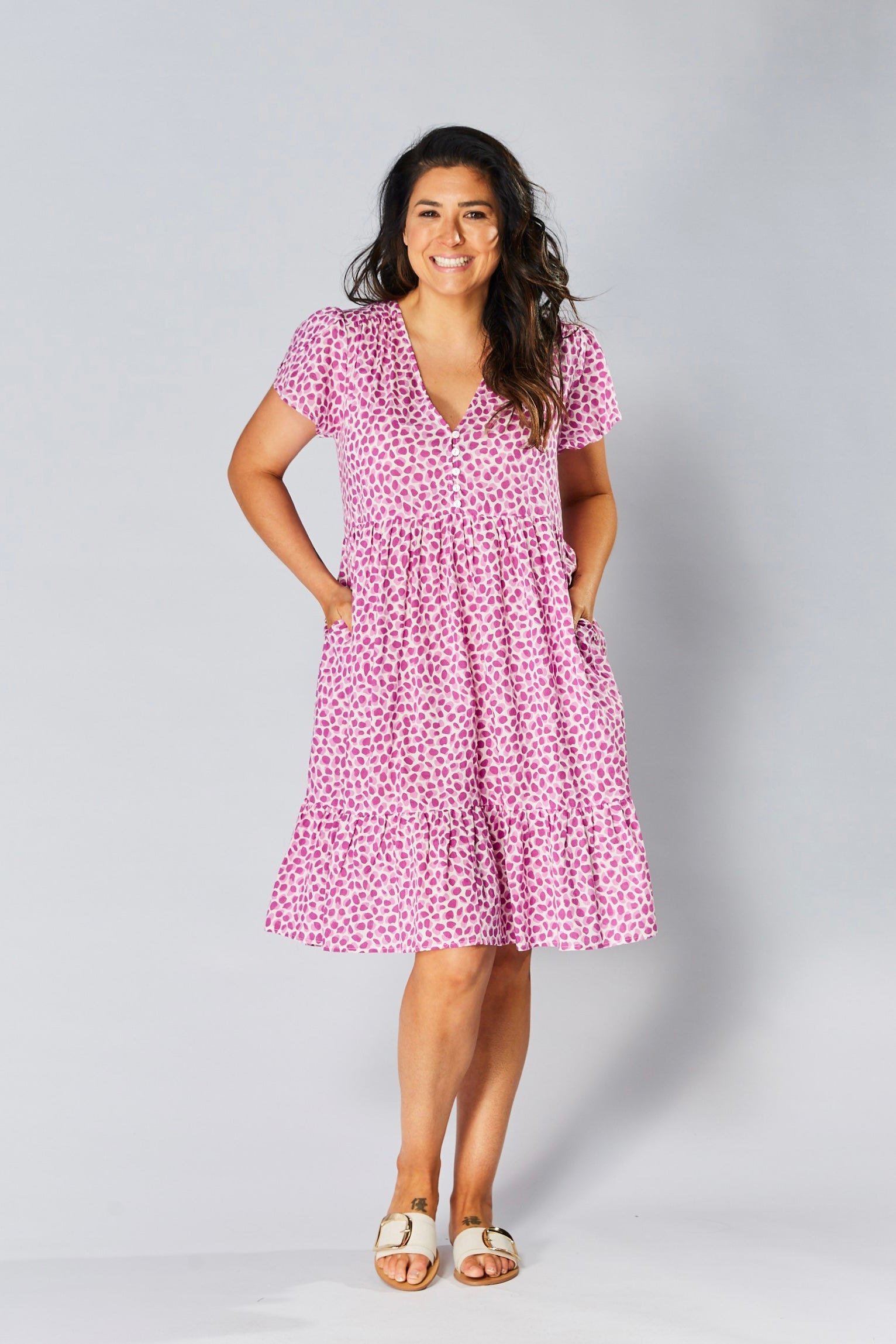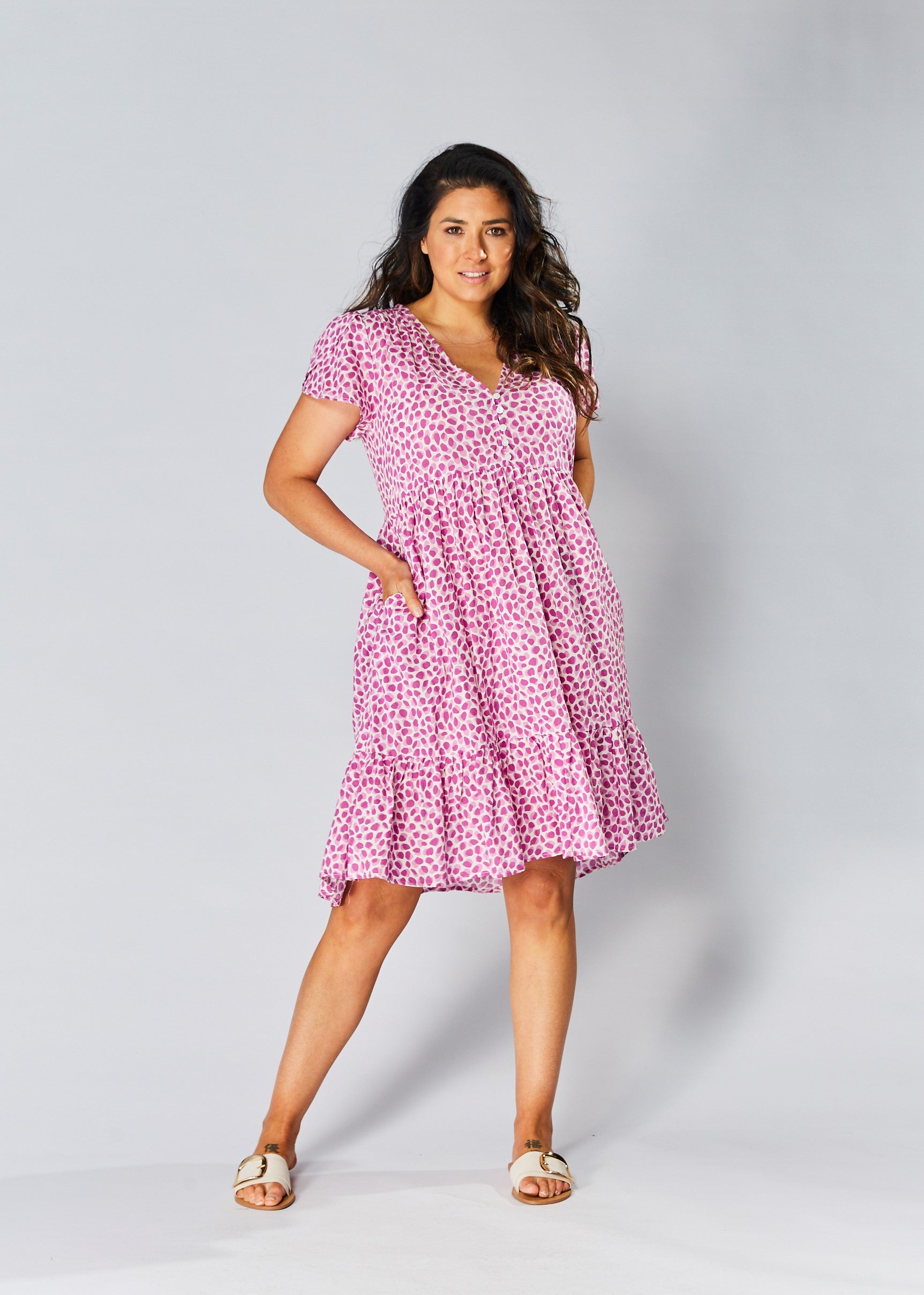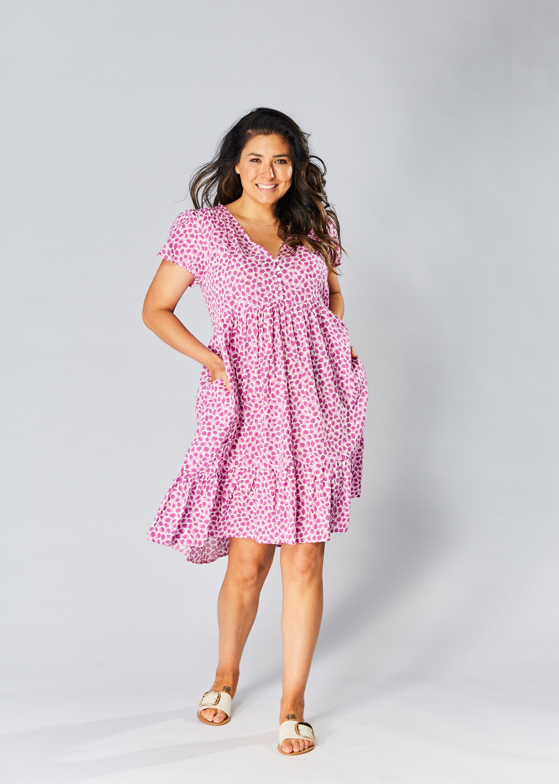 Tell me it's Spring without telling me it's Spring. This adorable babydoll dress says it all! Let's start with that cute pattern. It's fun, feminine and really unique and it comes in three gorgeous colourways. The short sleeves have a cute fluttery finish, and the V-neck ends in five buttons running down the front. The loose, oversized cotton fabric will keep you cool and the hem sits slightly lower at the back.