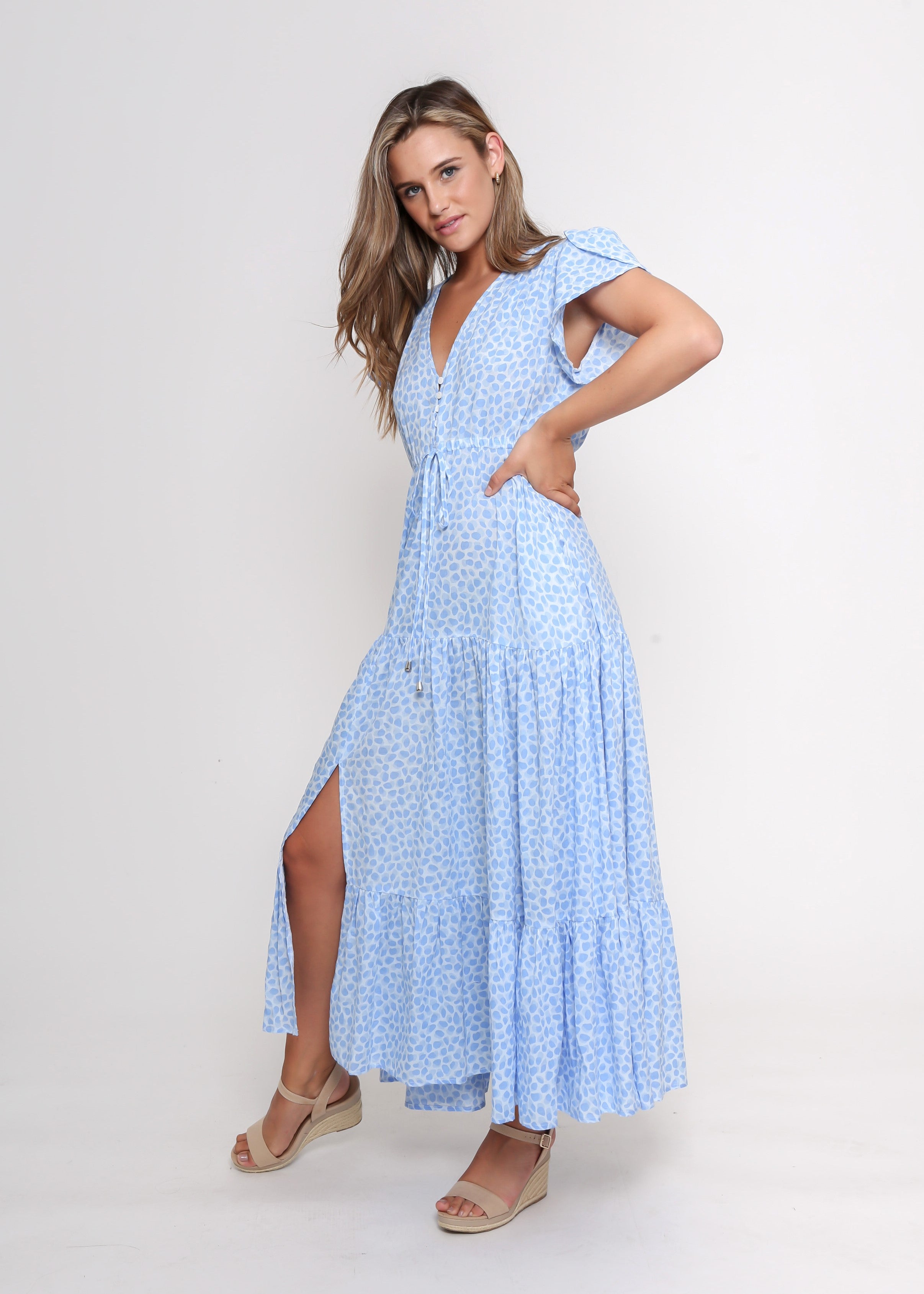 Did somebody say "Christmas Day dress"? Our Sunny Maxi Dress is a real showstopper, but she's also incredibly comfortable making her perfect for hot days. The 100% cotton finish is light and breathable, and we've packed this dress with memorable features. For starters, there's that deep V neckline, ending with functional buttons (perfect for breastfeeding!). The flutter sleeves are flattering on everyone, and the waist tie can be adjusted according to your style. There's a split at the centre front so you can show off your pins, and of course we've added pockets because we know what our girls like!