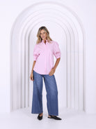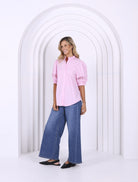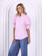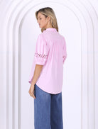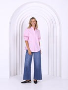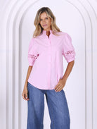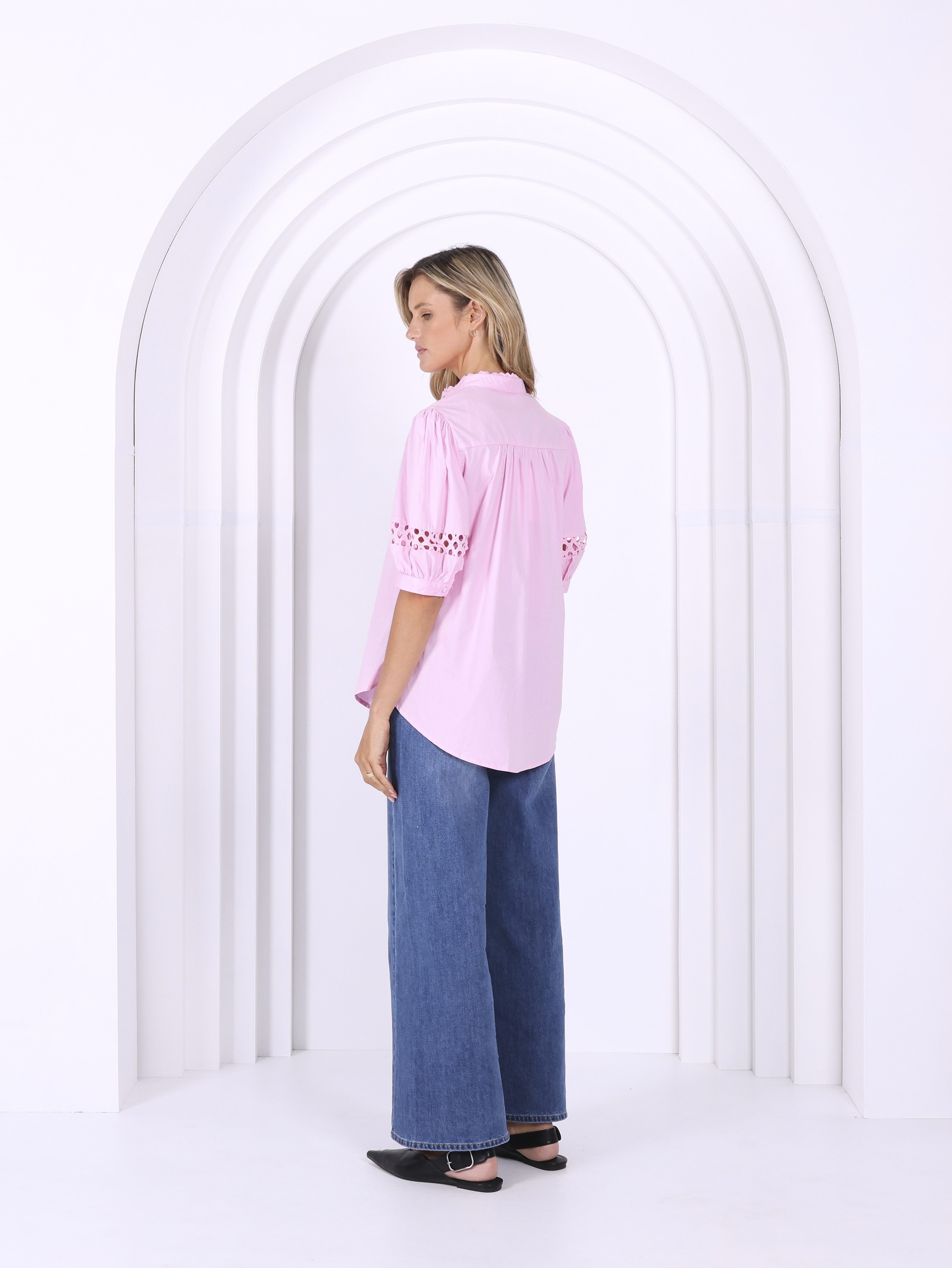 Perfect for a city break, this Grace top is a must-have in your wardrobe! Featuring button front detailing, cotton broidery fabric on sleeves and neck rim!