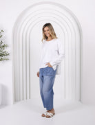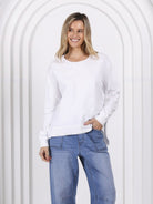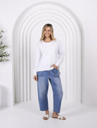 Nothing but love for this perfectly oversized Jax Sweat Designed by G7. Super-soft fabric with a beautiful finish makes this pullover impossible to take off. This comfy jumper is loose fit with a little extra room and perfect length just right around the waistband.
