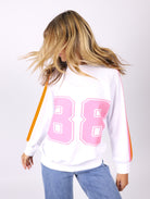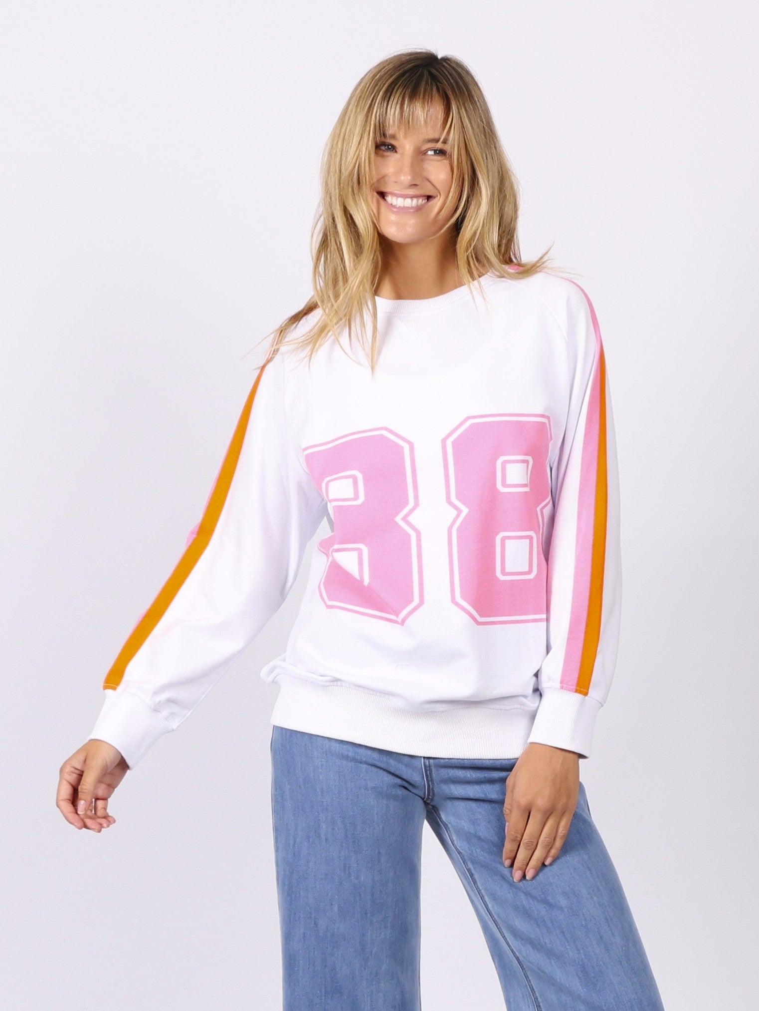 Nothing but love for this perfect 88 Sweat designed by Leoni. Super-soft fabric with a beautiful finish makes this pullover impossible to take off. This comfy hoodie is loose fit with a little extra room and perfect length just right around the waistband.