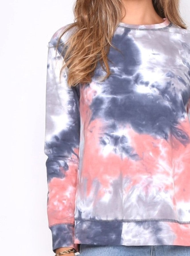 Brooklyn Tie-Dye Sweater - Grey/Pink