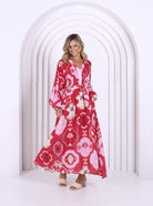 The Leoni Signature Capri Dress design in gorgeous vibrant print of beautiful flowers. This everyday dress features romantic billowing sleeves and optional front tie detailing while the full-bodied skirt is free of underlining, making it one of our most comfortable styles due to the heavenly-soft lightness of the material. Our signature floral pattern feels uplifting and vibrant on this eye-catching design. A classic midi dress you will want in every colour!