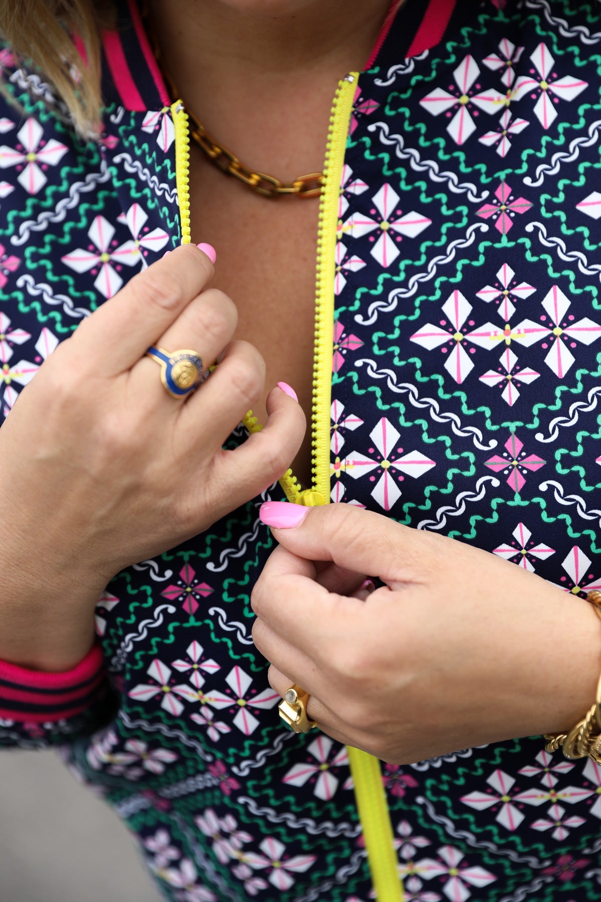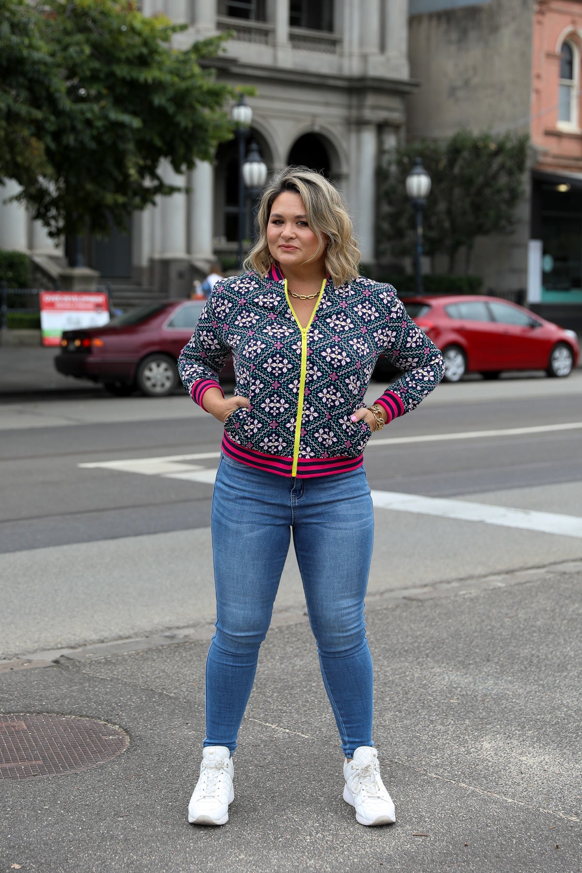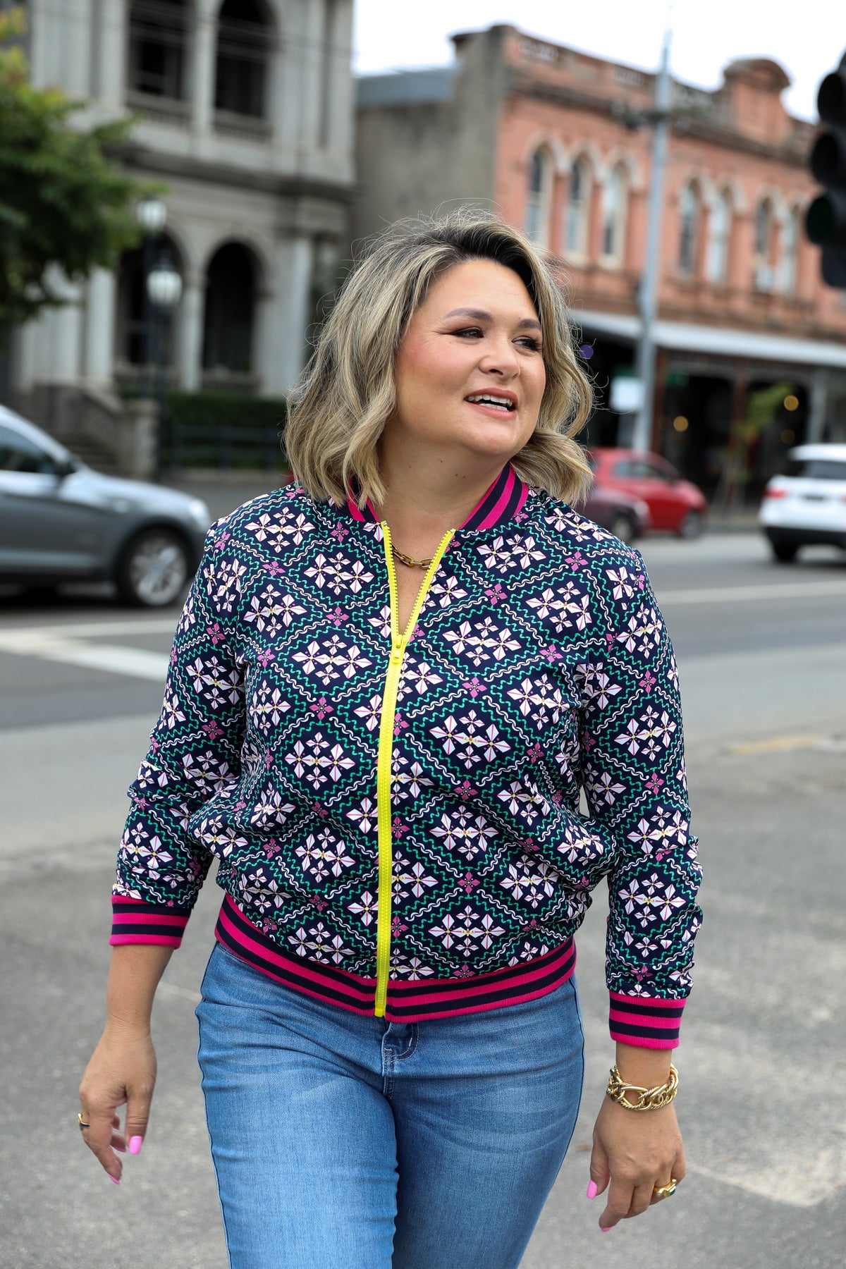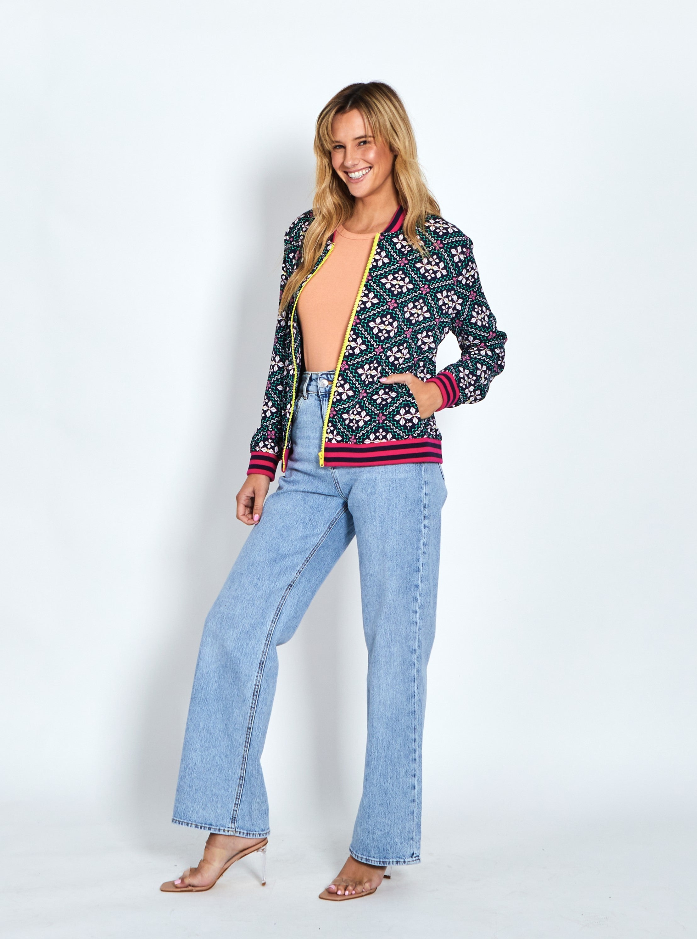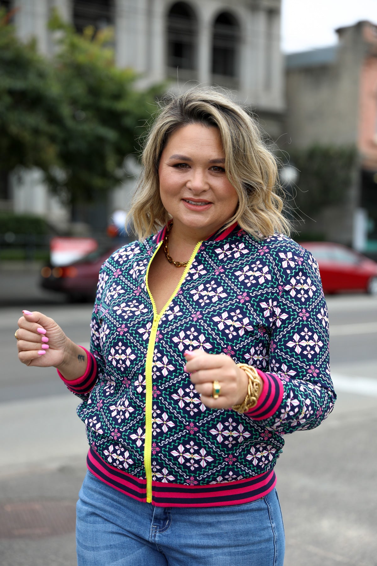 Get your Celine Vintage-Inspired jacket today for your wardrobe. An elastic ribbed hem and cuffs, and lightweight fabric bring retro vibes to this beautiful jacket and beyond!
