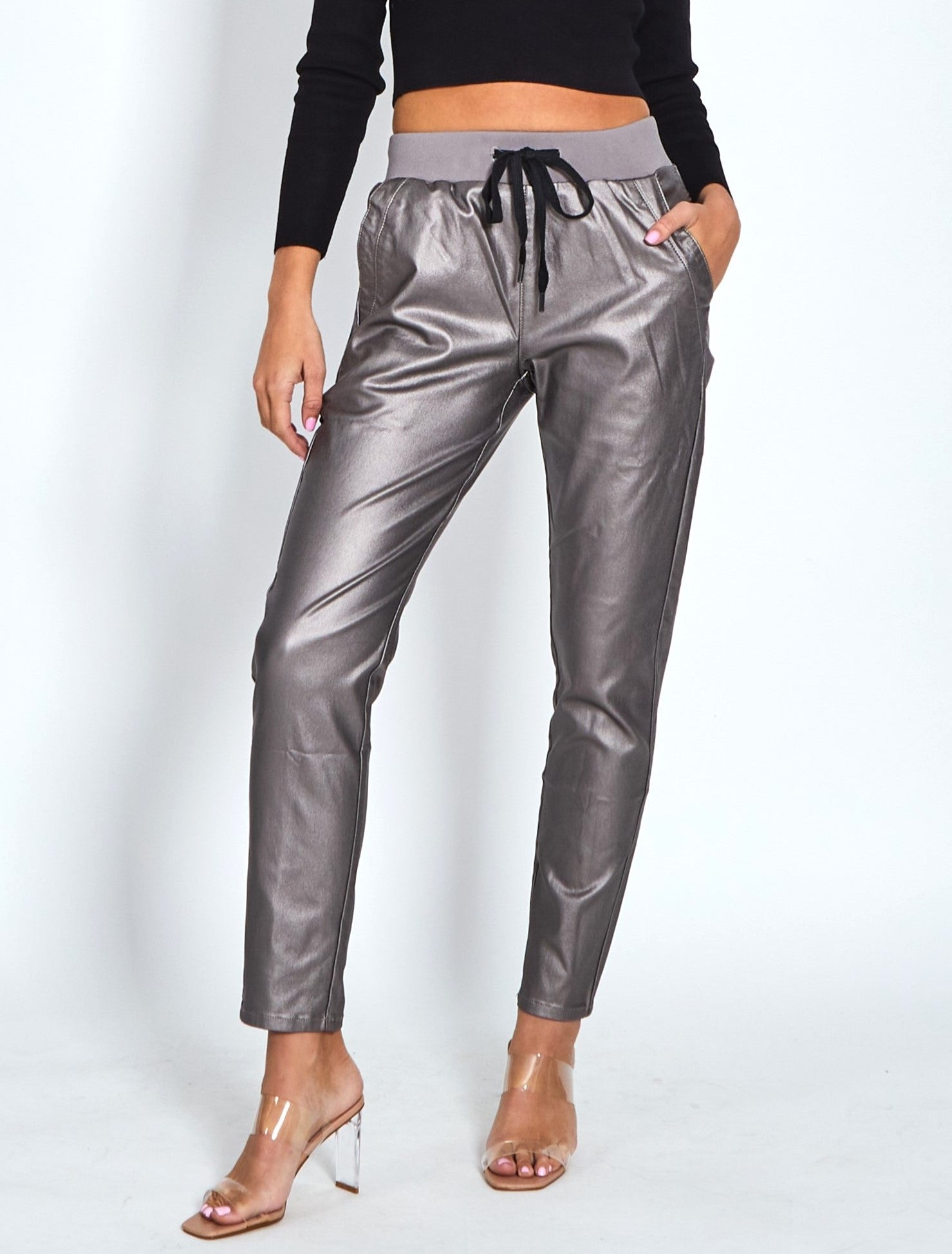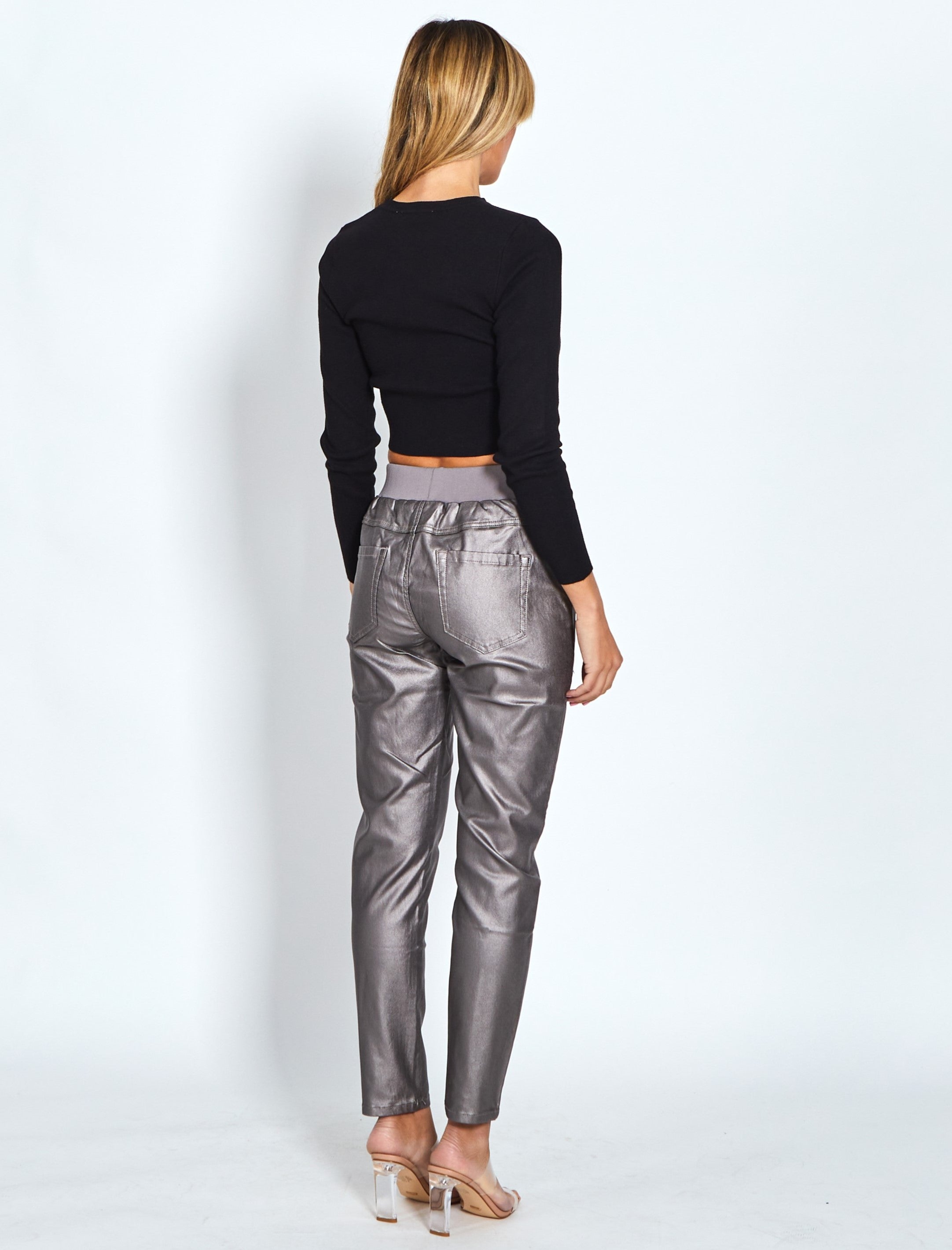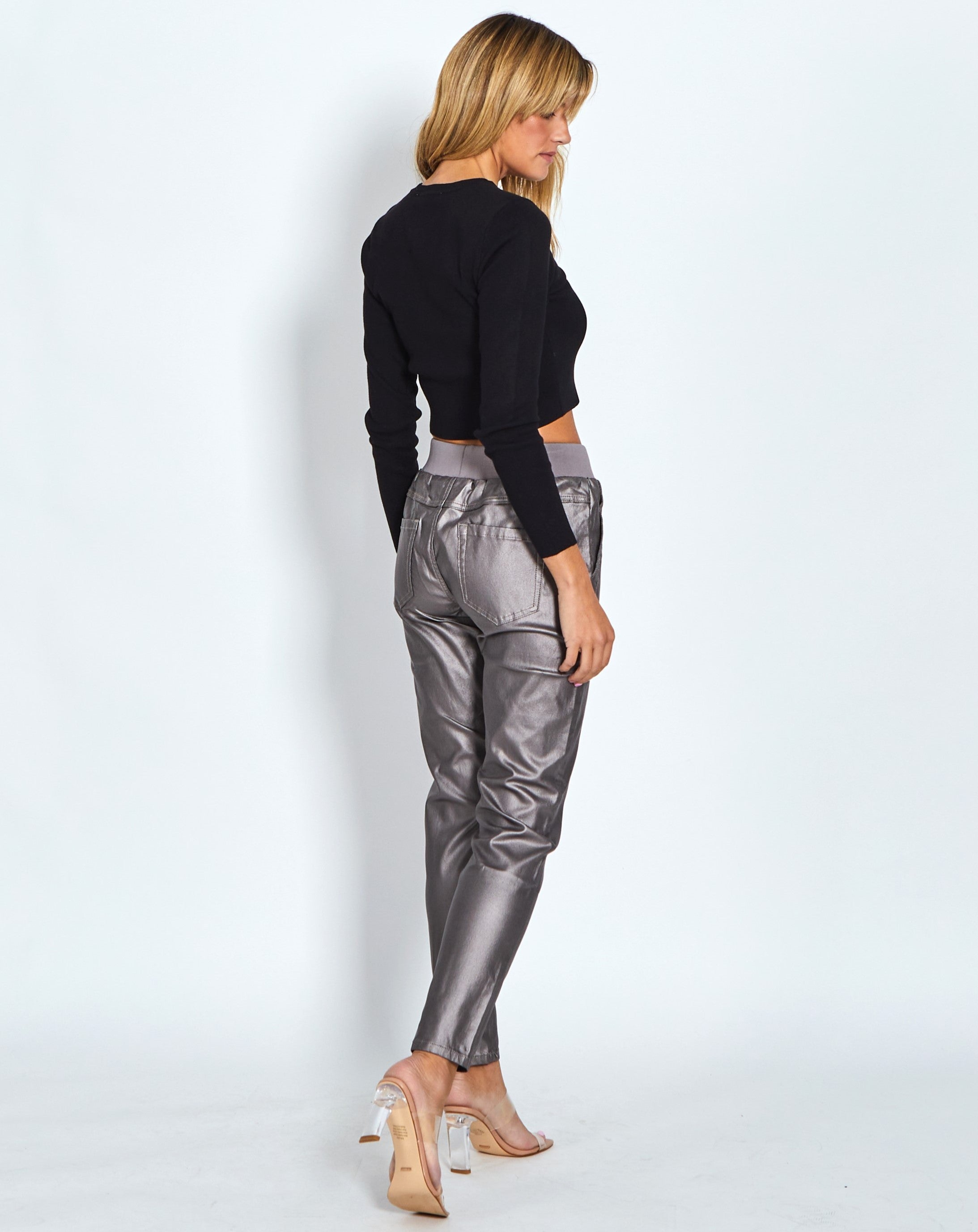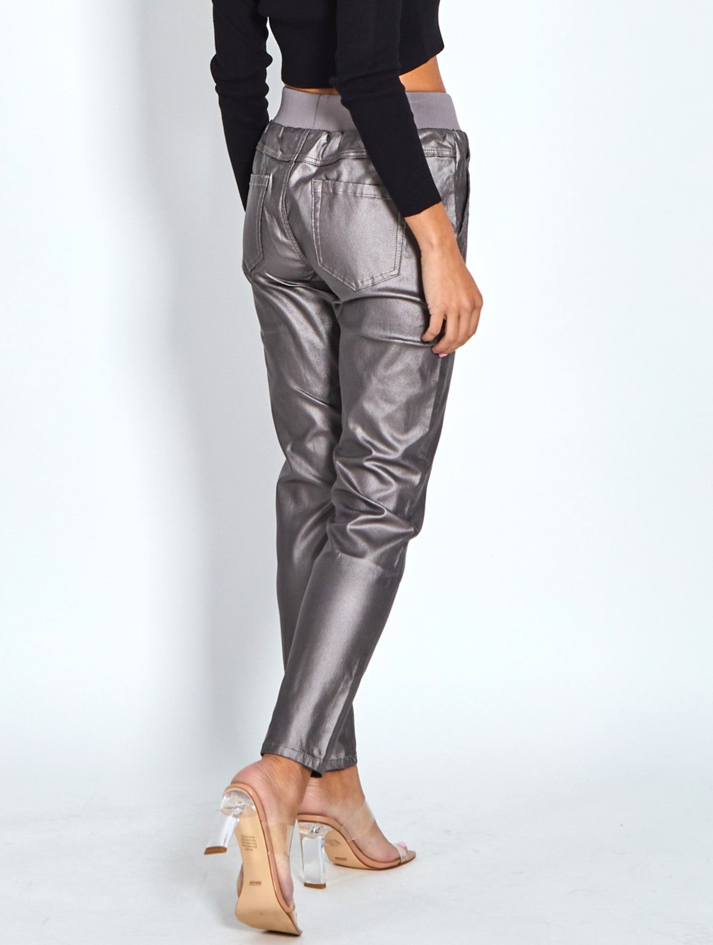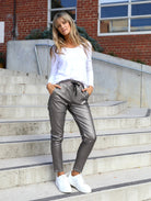 Riley Denim Joggers Wax Look - Pewter