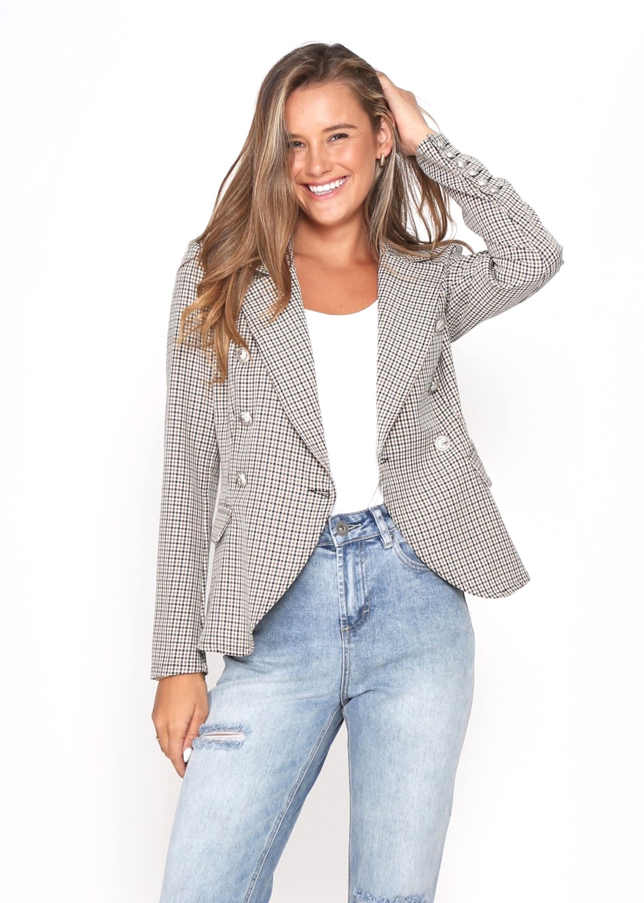 Hayden Fitted Blazer - Black & White Check