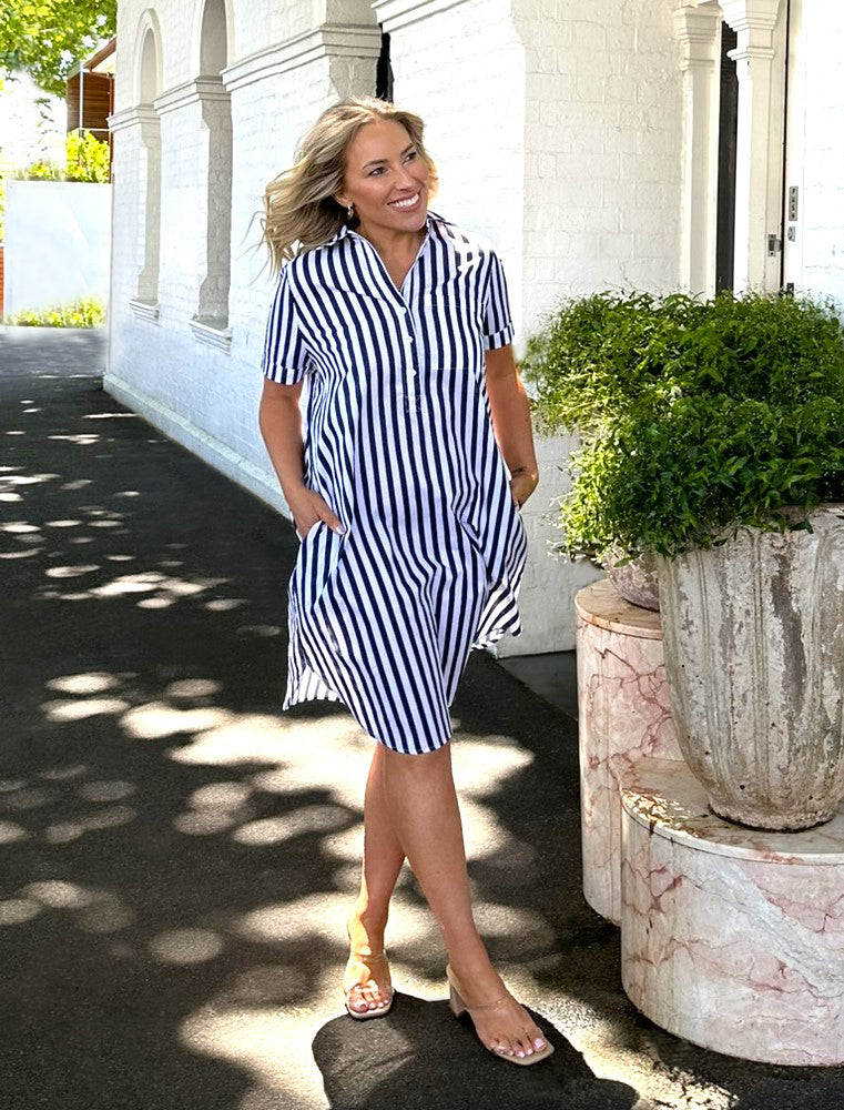 Karina Dress - Pink/Navy Stripe