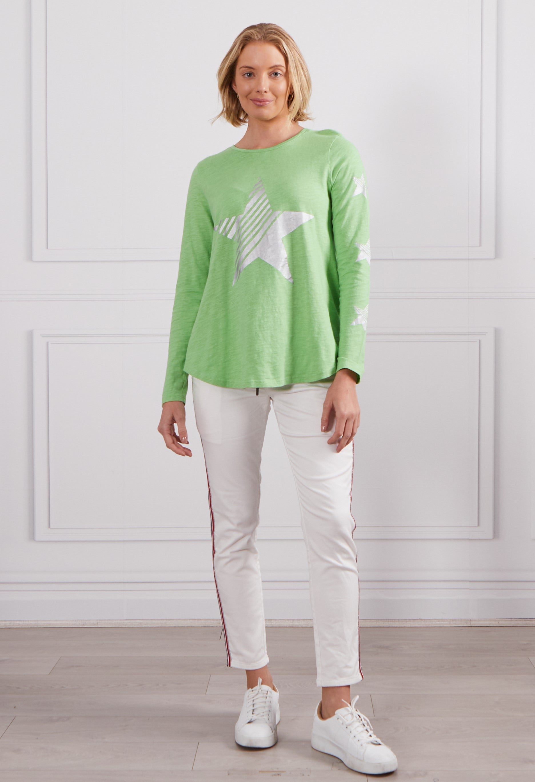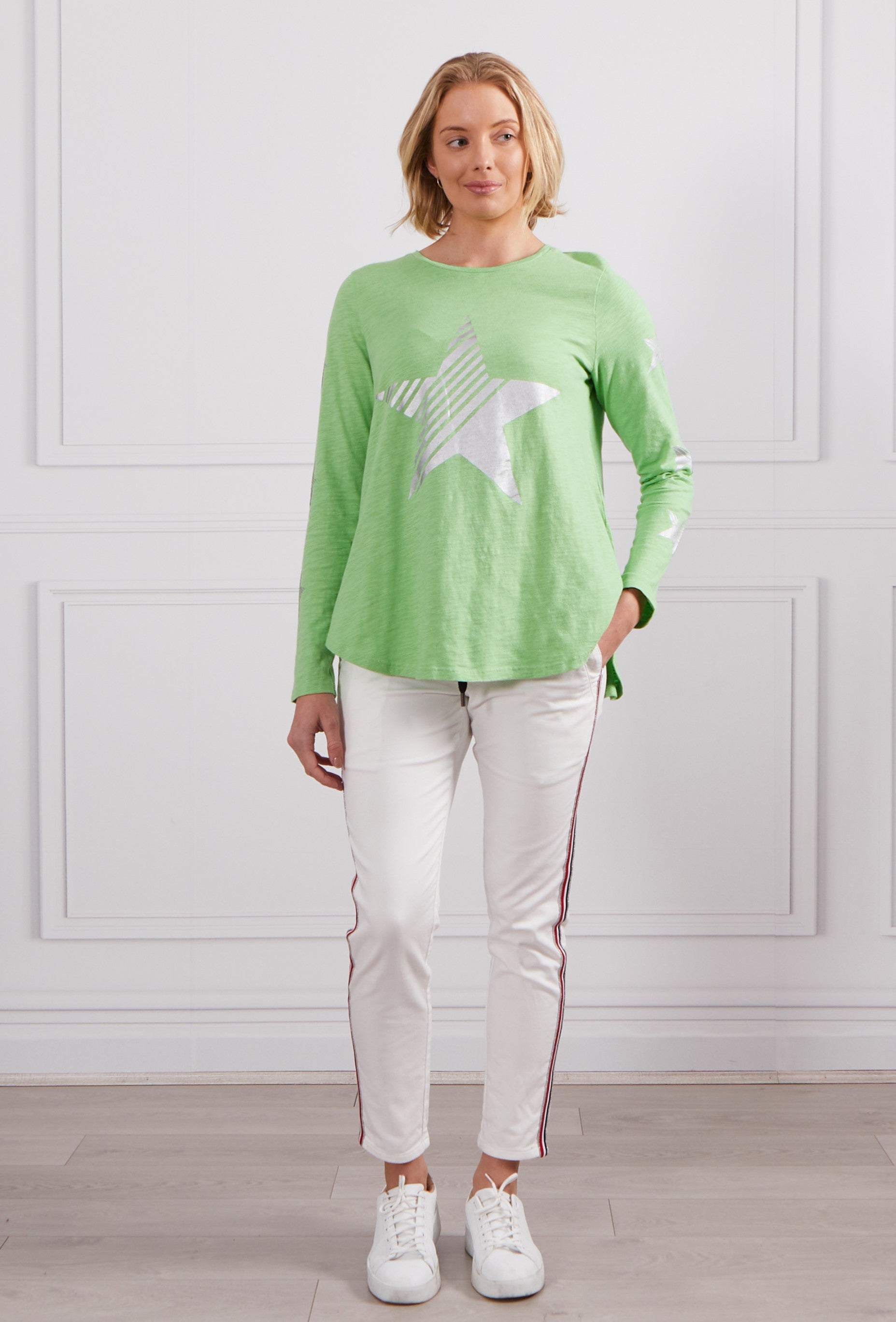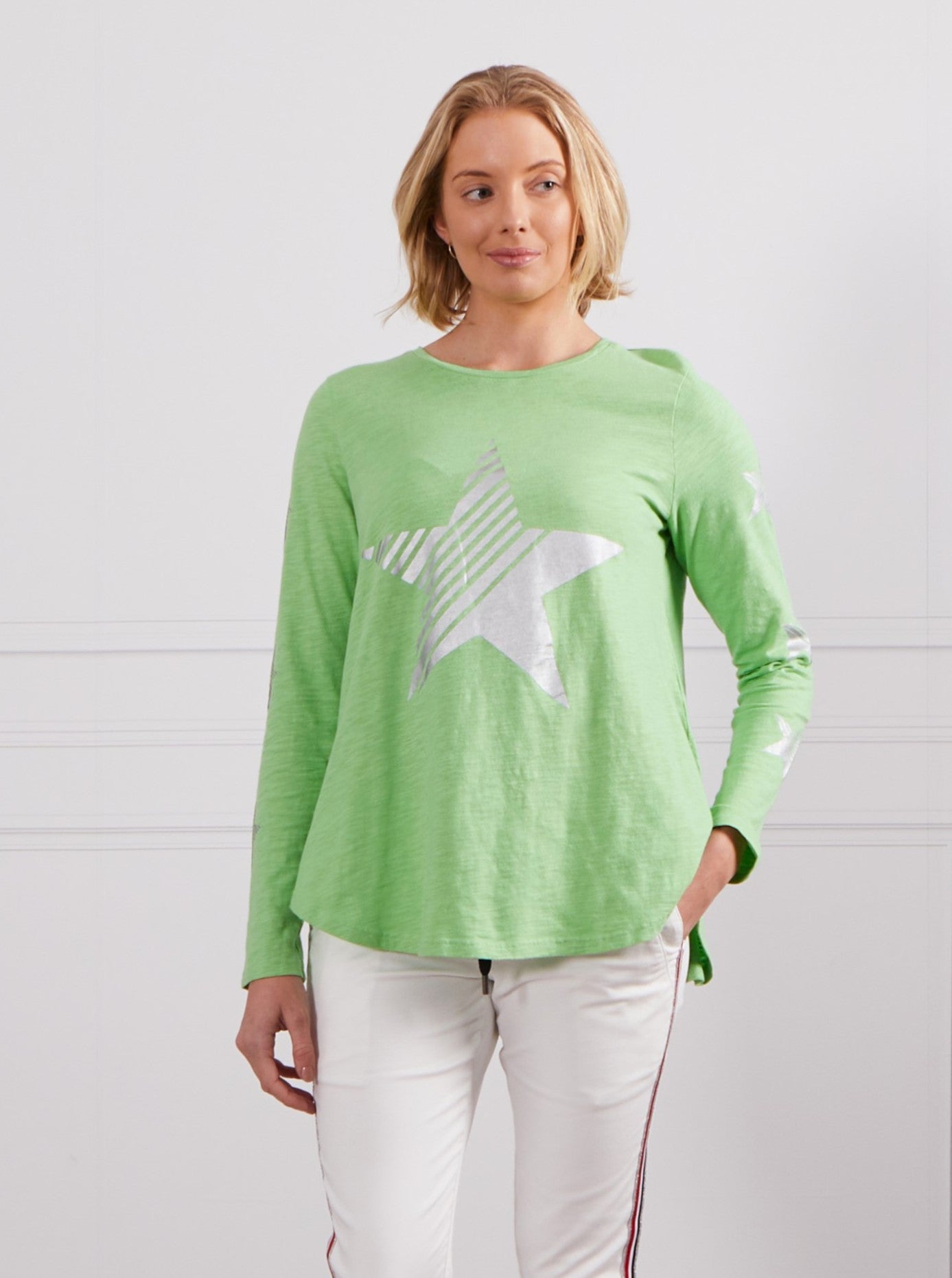 - Star print on front and arms