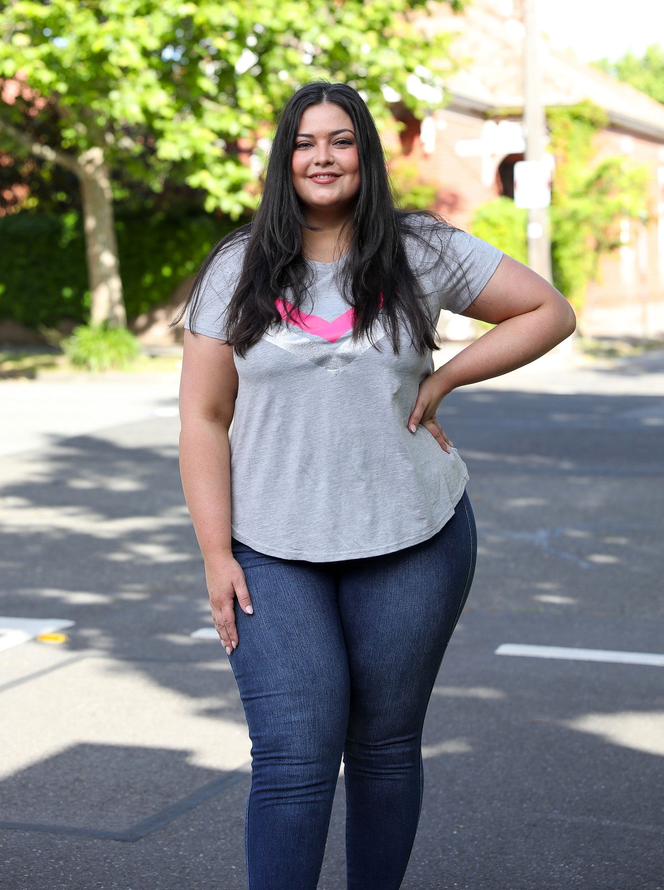 Chelsea is 173cm and is wearing size L