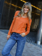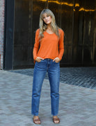 The Kai Long Sleeve Tee designed by G7 is made from Organic French Terry Cotton. The Kai Tee is breathable, super soft and very comfortable to wear. It has a deep round front neckline, details on back, and trendy square shape that look great with jeans, shorts, skirts. You will fall in love with this beautiful Kai Tee!