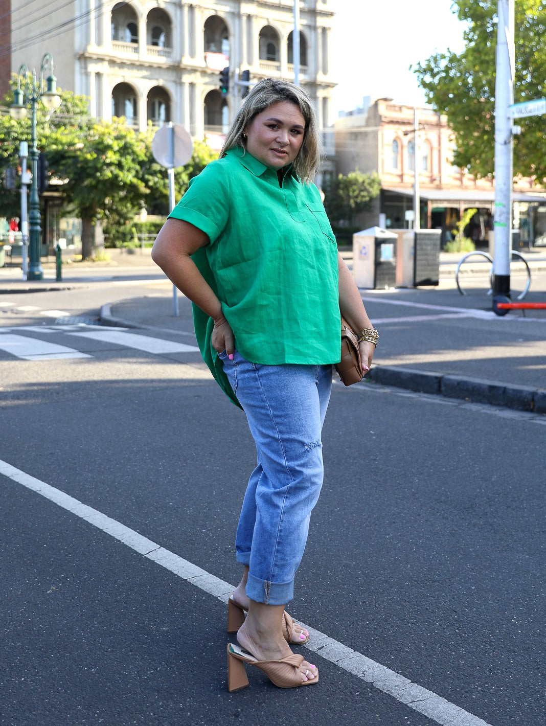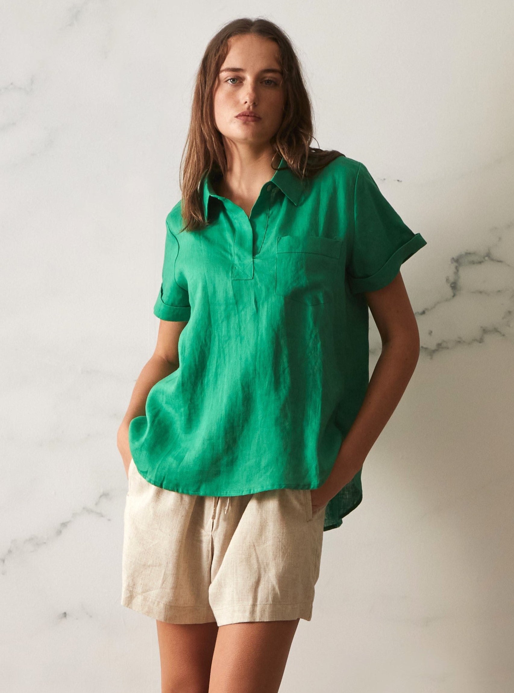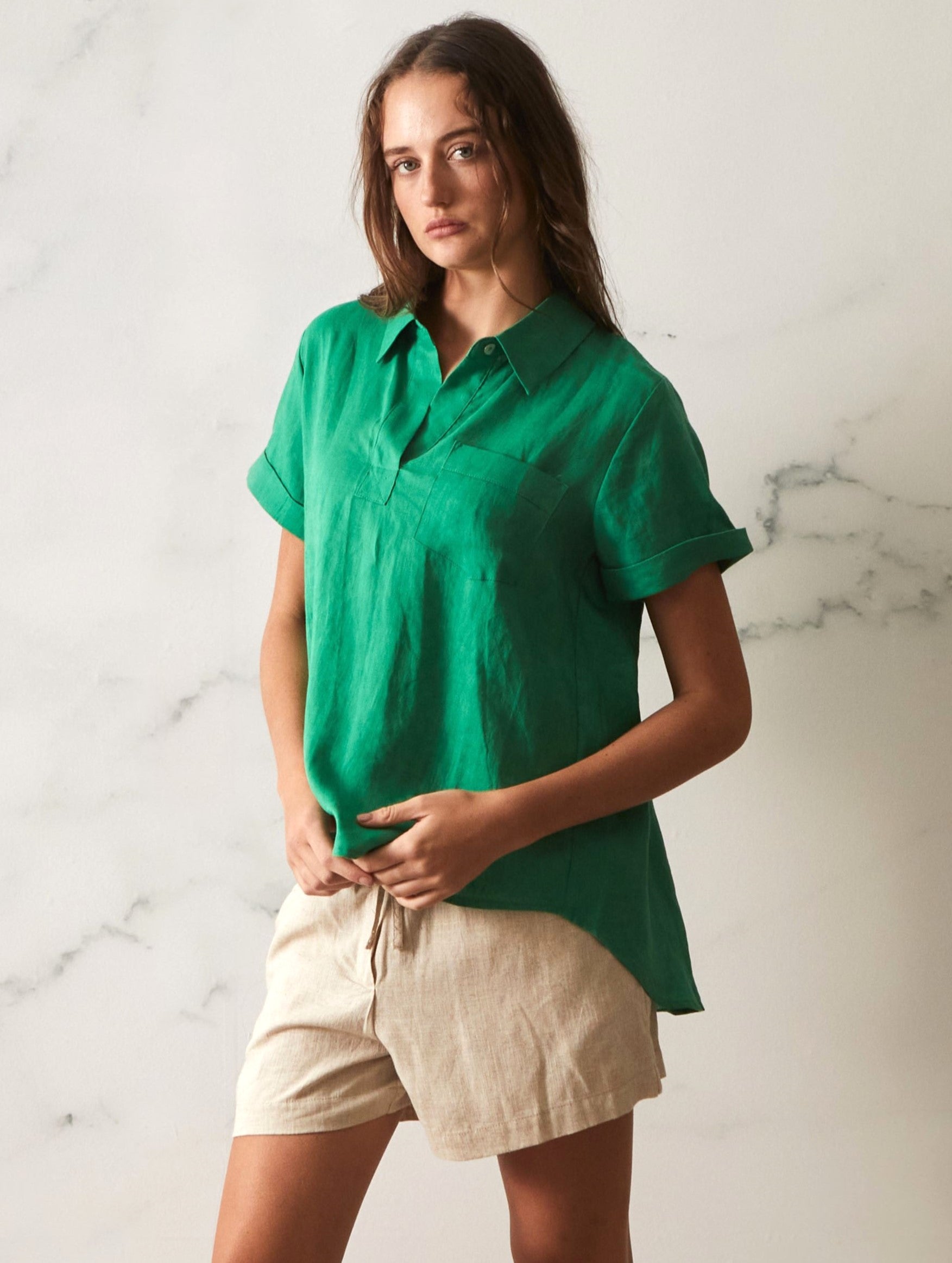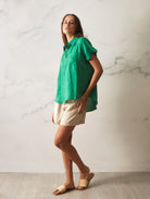 Tia Linen Top - Green