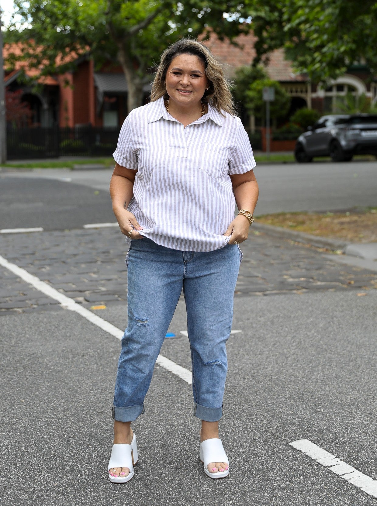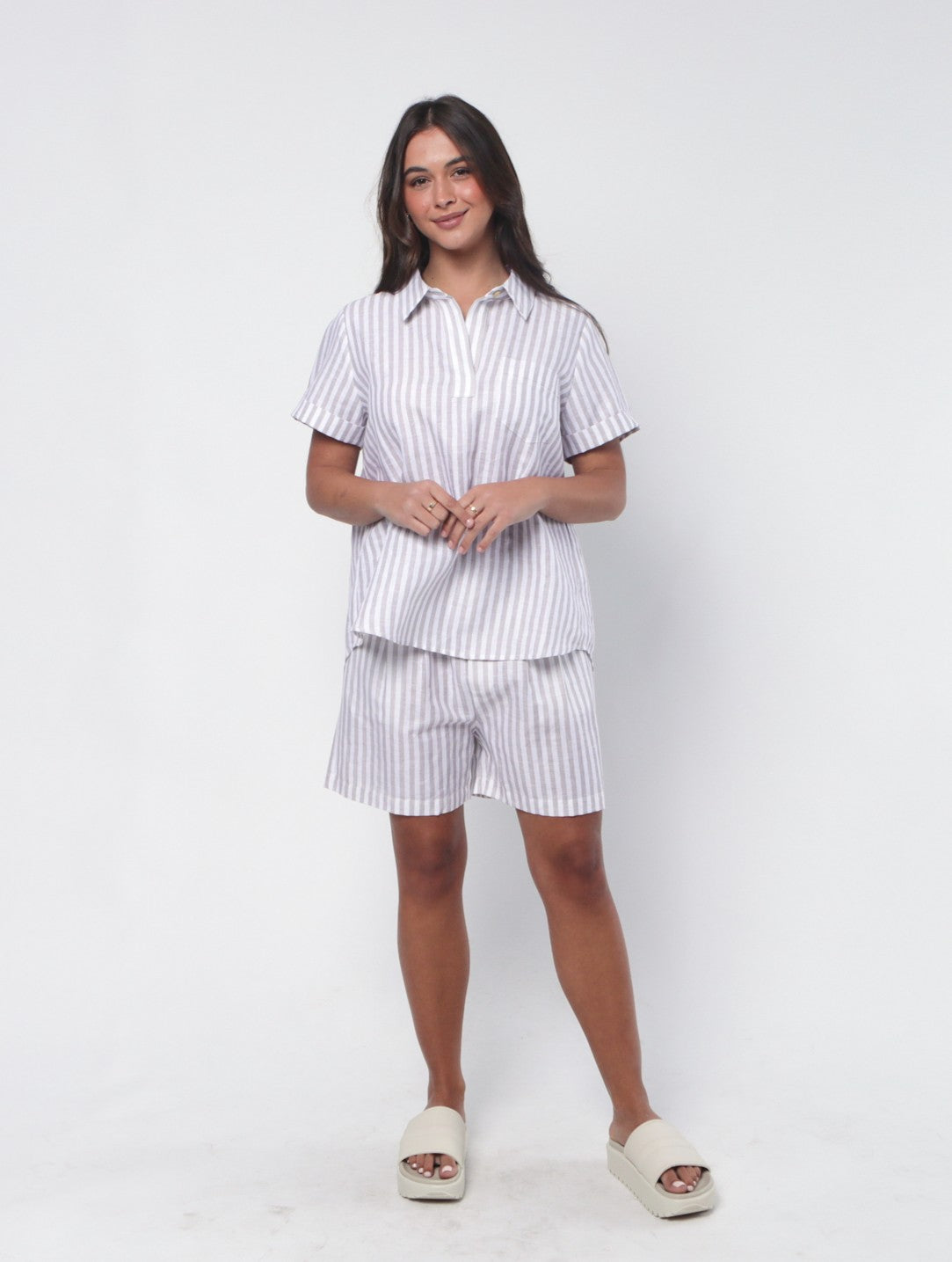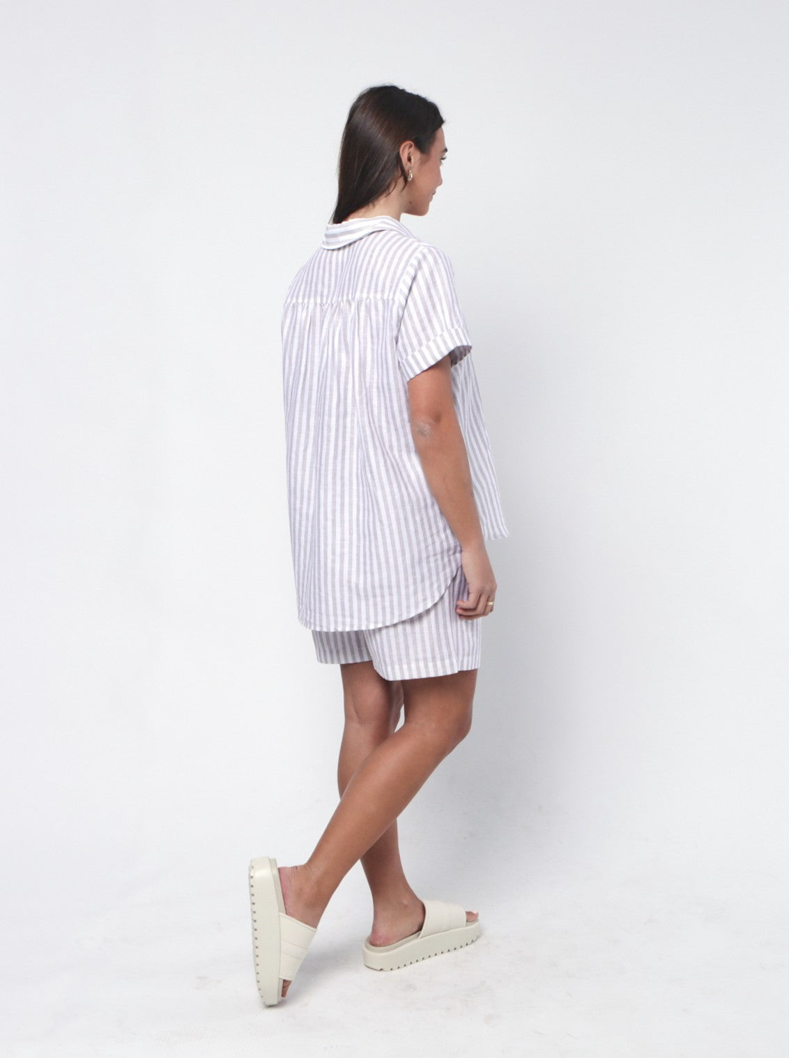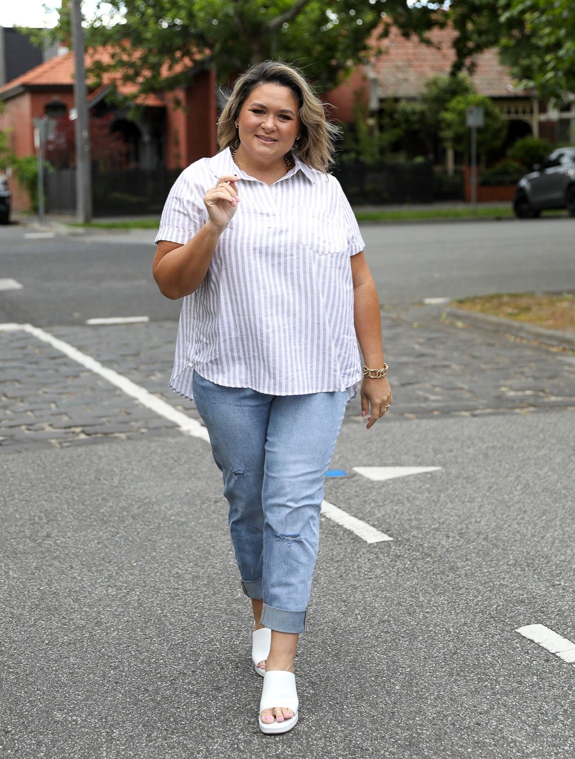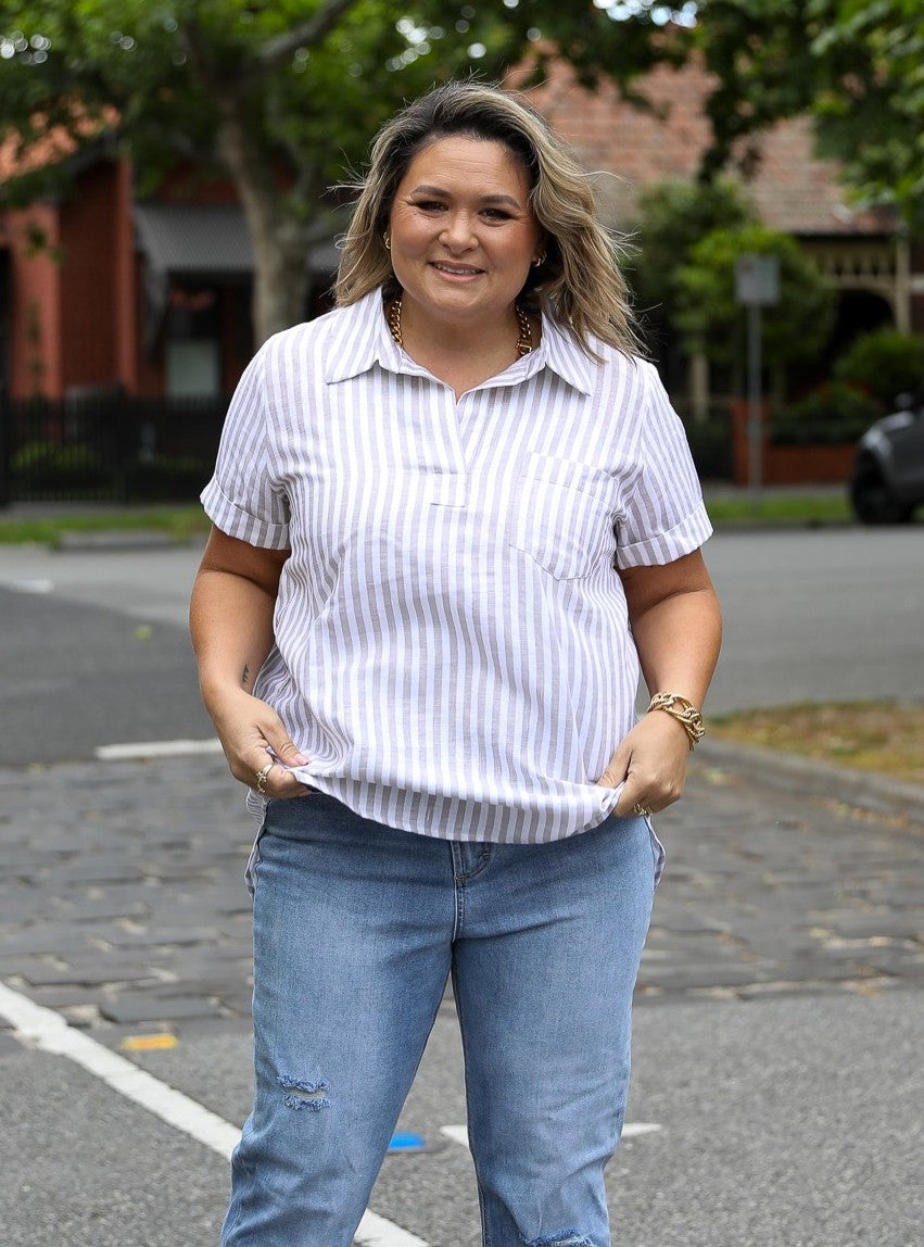 As easy as a summer's day, Tia Top goes anywhere! This gorgeous casual linen top has a loose comfy fit and cap sleeves. Mother Nature’s performance fiber, our lightweight linen shirt wicks moisture and breathes to keep you cool. Crafted with pure linen, assembled with sturdy stitching, finished with a cuffed detail on the short sleeves, this effortless shirt features a slouchy, relaxed fit and rounded bottom hem for added shape.