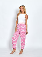 When Leoni does the matching set, the results are always seriously covetable! This silky feel-twill Celine Jogger is made with finest fabric to give you the softest feel to your skin and patterned with the unmistakable 'Supreme' print. Wear them with your favorite tee, tank, sweatshirt or matching jacket from Leoni.