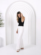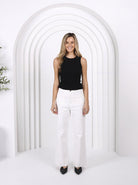 You can't go wrong with a Milan Wide-Leg Stretch Jeans designed by Monaco Jeans. The Milan Wide-Leg Jeans presents a neat and stylish version with trendy design. The large front patch pocket design adds modern details, the roll-up style adds a more casual mood! These timeless jeans feature a high-rise waist, wide legs, and a sleek blue finish. They're easy to wear, easy to style and perfect for transeasonal dressing. Team it with heeled sandals and a crop top for a dressy look or with sneakers and a tee for a casual look! It is generous, whether it is a commuter or casual style. The neat and smooth tailoring make the single product show a sense of freedom and sway with the steps!