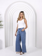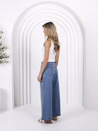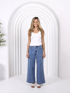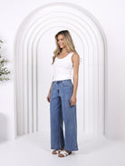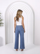 You can't go wrong with a Arden Stretch Wide-leg Jeans designed by Monaco Jeans. The Arden Wide-Leg Jeans presents a neat and stylish version with trendy design. The large front patche pocket design adds modern details, the roll-up style adds a more casual mood! These timeless jeans feature a high-rise waist, wide legs, and a sleek blue finish. They're easy to wear, easy to style and perfect for transeasonal dressing. Team it with heeled sandals and a crop top for a dressy look or with sneakers and a tee for a casual look! It is generous, whether it is a commuter or casual style. The neat and smooth tailoring make the single product show a sense of freedom and sway with the steps!