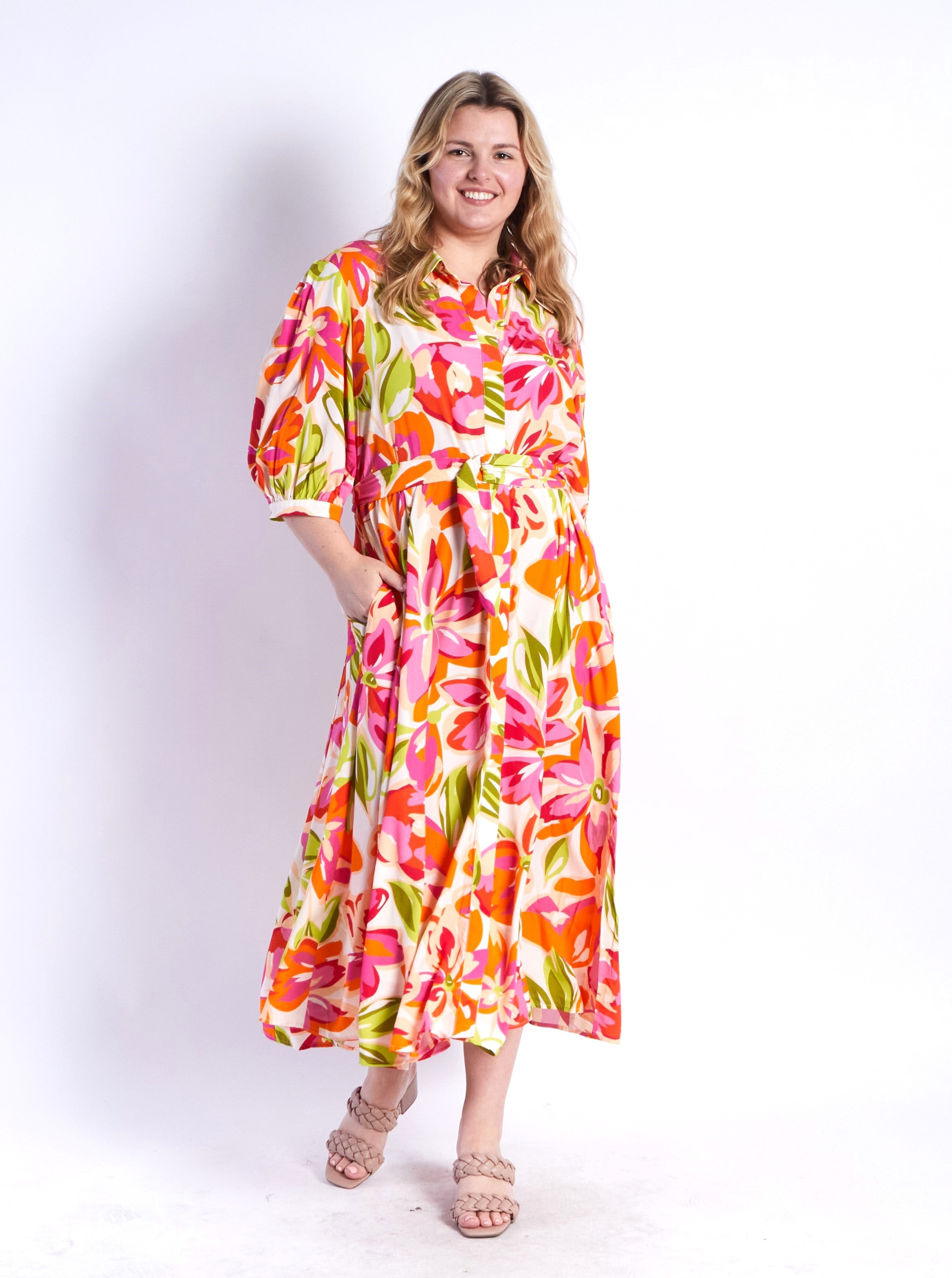 Beautiful fabric, lovely colours, pockets, button through dress, fabric quite sheer will have to see how it goes outside on a bright day!