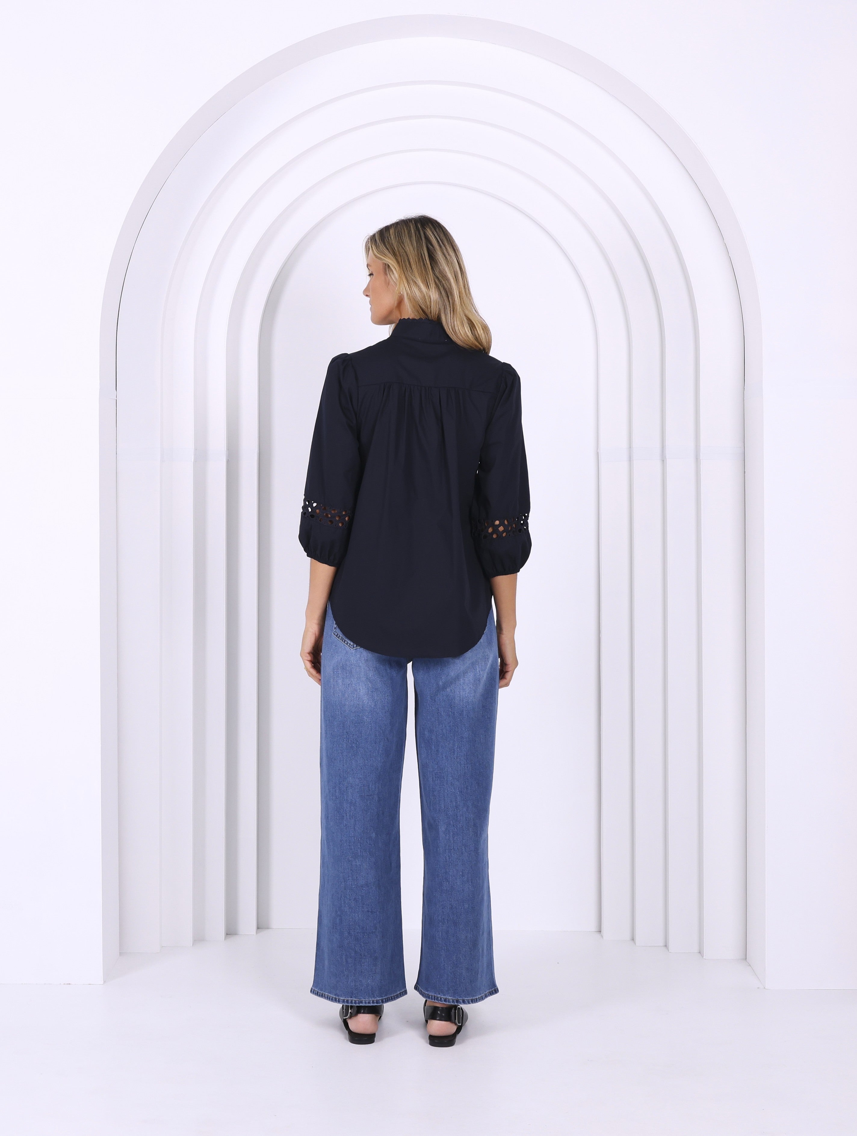 Perfect for a city break, this Dior top is a must-have in your wardrobe! Featuring button front detailing, cotton broidery fabric on sleeves and neck rim!