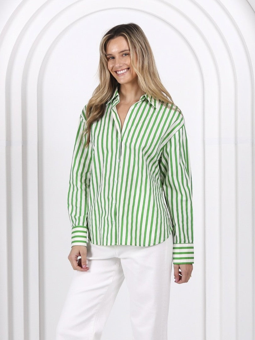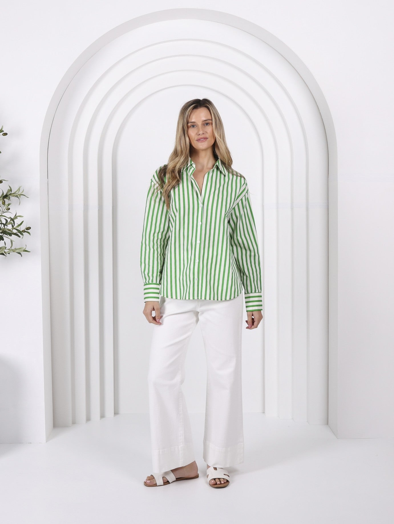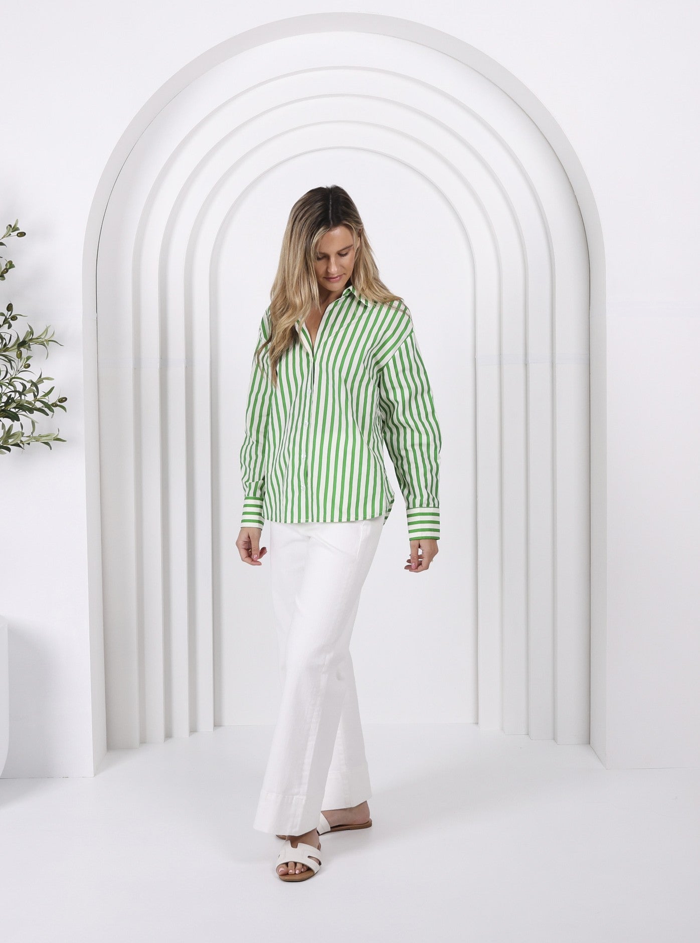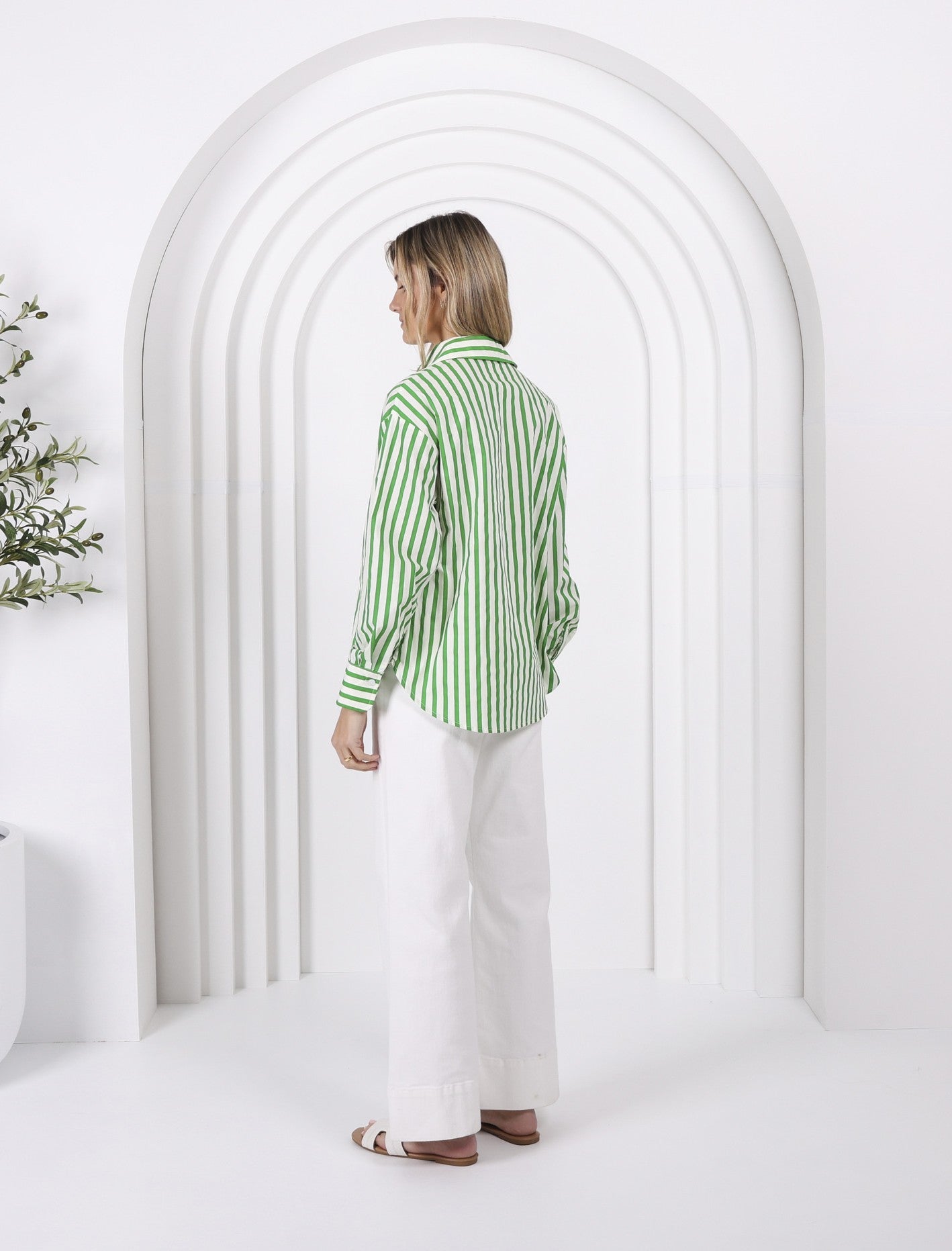 A classic striped cotton-poplin shirt adds a playful note by switching up the pattern on the chest pocket. An extra-roomy fit keeps the feeling relaxed in this all cotton Ralph Shirt punctuated with vertical stripes.