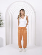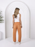 Characteristics of Leo Barrel-Leg Jeans include a fitted waist, flared-out shape around the mid-leg, and tapered silhouette at the bottom, which exudes the look of, well, a barrel. It's the vibe of a cowboy ready for a showdown in the Wild, Wild West!!!
