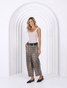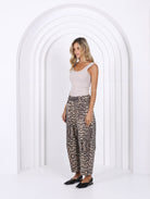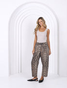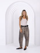 Characteristics of Leo Barrel-Leg Jeans include a fitted waist, flared-out shape around the mid-leg, and tapered silhouette at the bottom, which exudes the look of, well, a barrel. It's the vibe of a cowboy ready for a showdown in the Wild, Wild West!!!